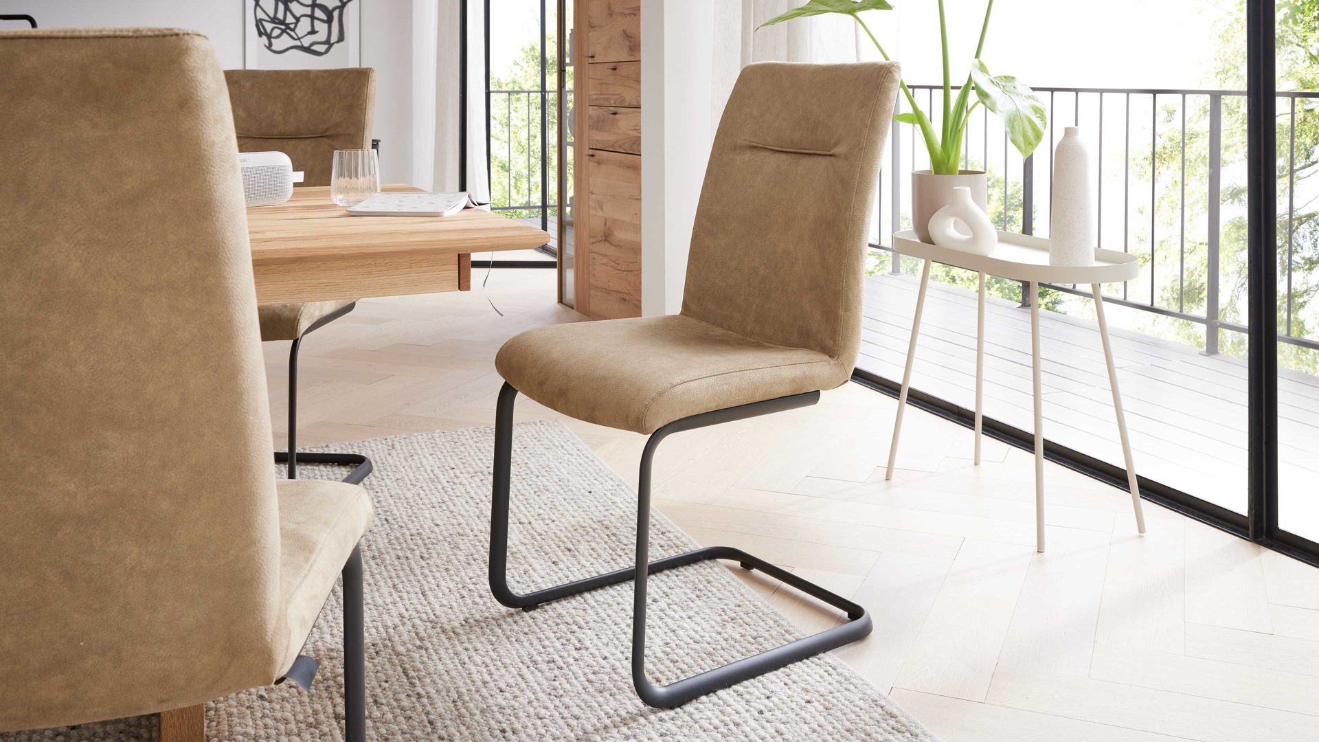 Ob als Esszimmerstuhl, Freischwinger, Polsterstuhl oder Speisezimmer-Schwingstuhl – dieser Stuhl bringt Komfort und Design ganz unkompliziert zusammen.