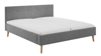 Mit den eichefarbenen Holzfüßen und dem hellgrauen Flachgewebebezug bringt das Polsterbettgestell Mattis modernes Flair in Ihr Schlafzimmer.