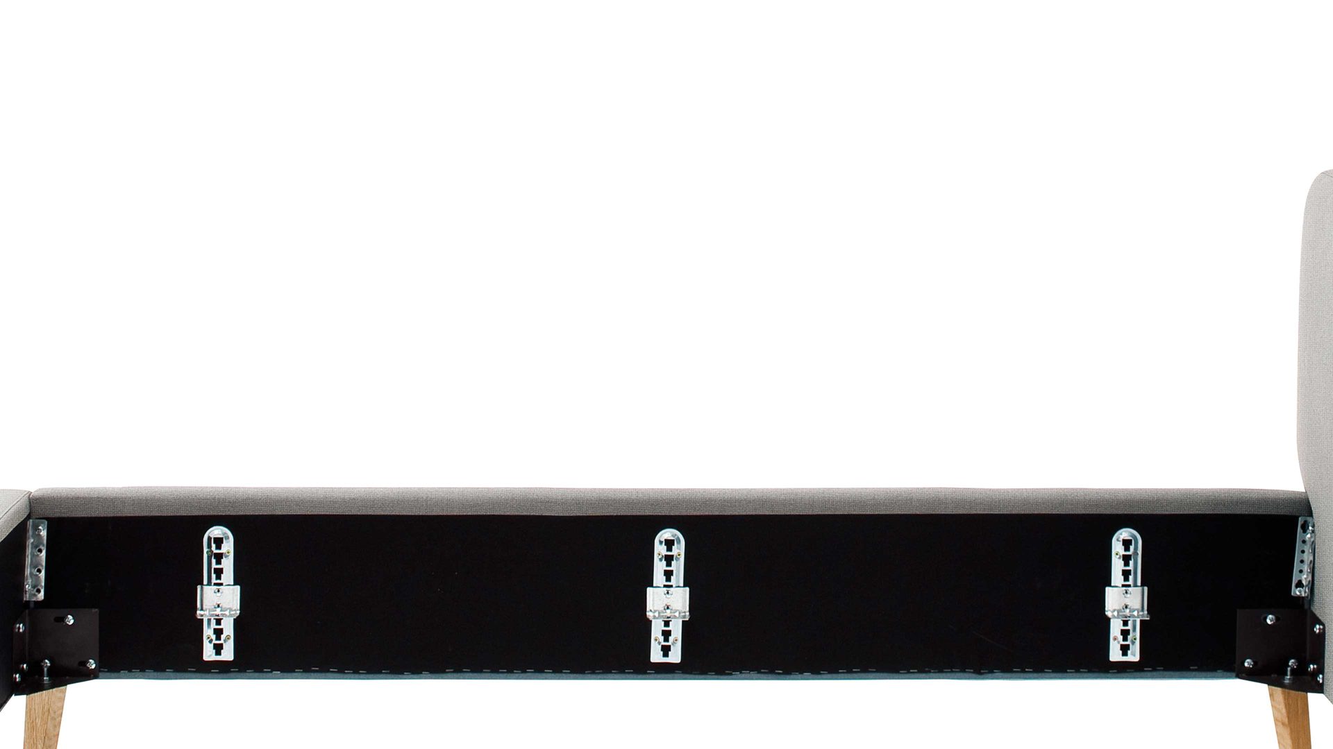 Mit den eichefarbenen Holzfüßen und dem hellgrauen Flachgewebebezug bringt das Polsterbettgestell Mattis modernes Flair in Ihr Schlafzimmer.