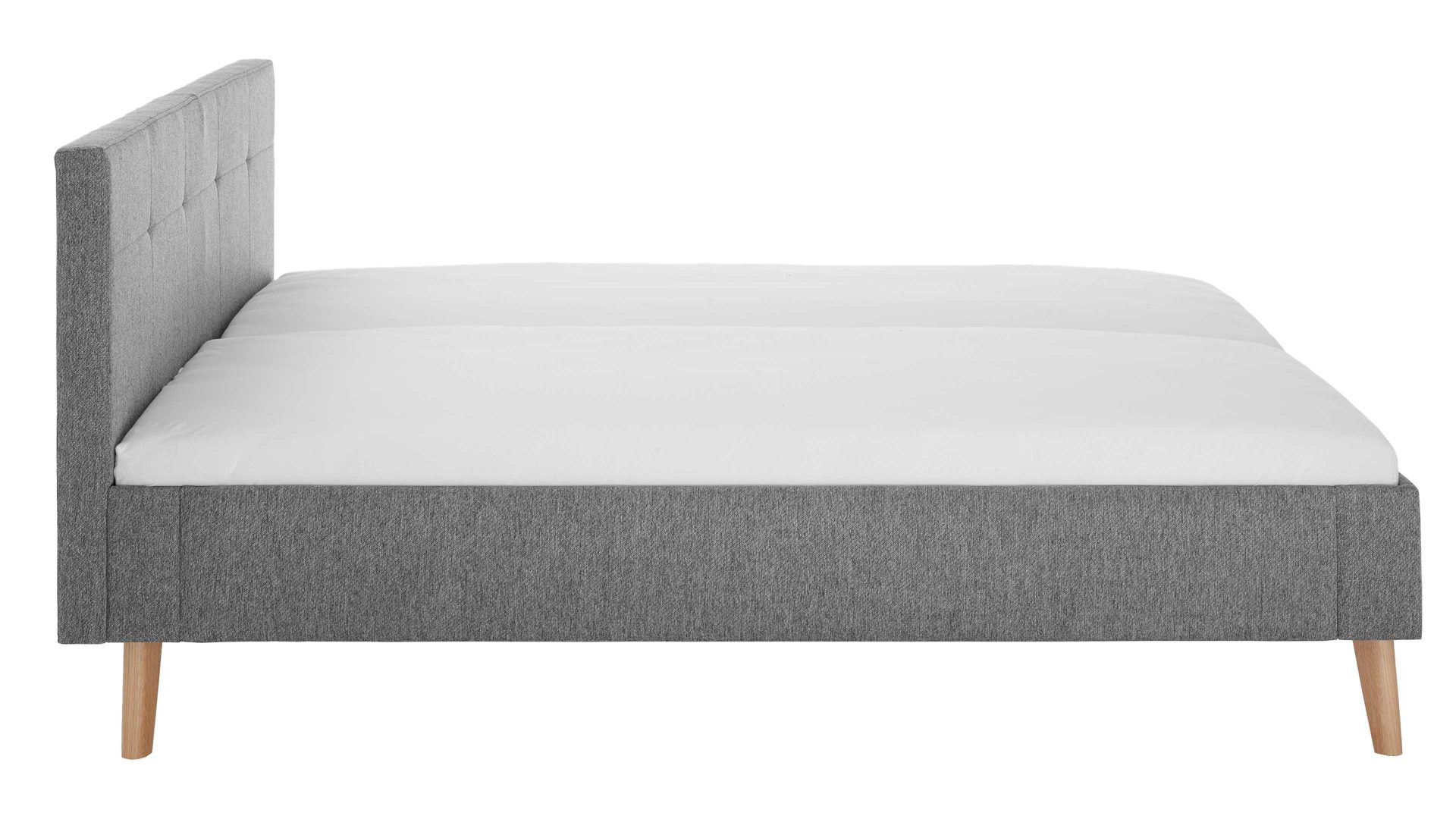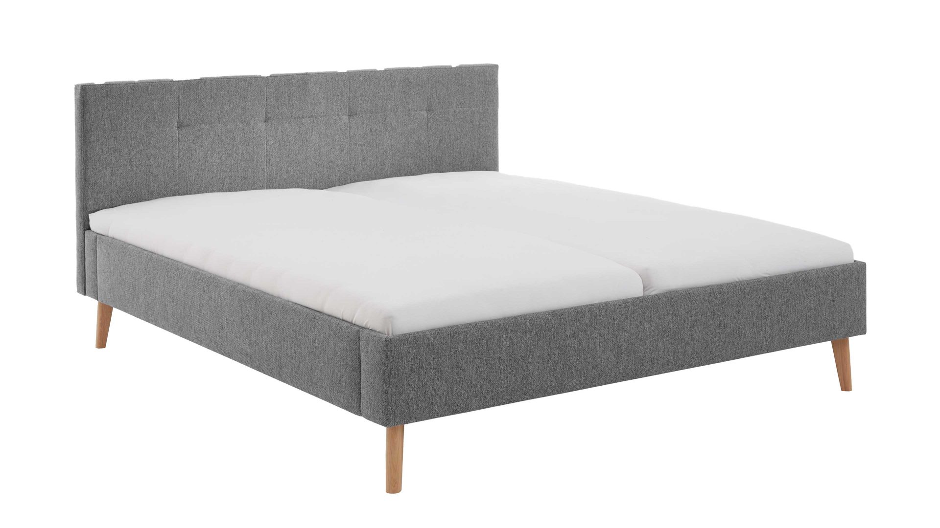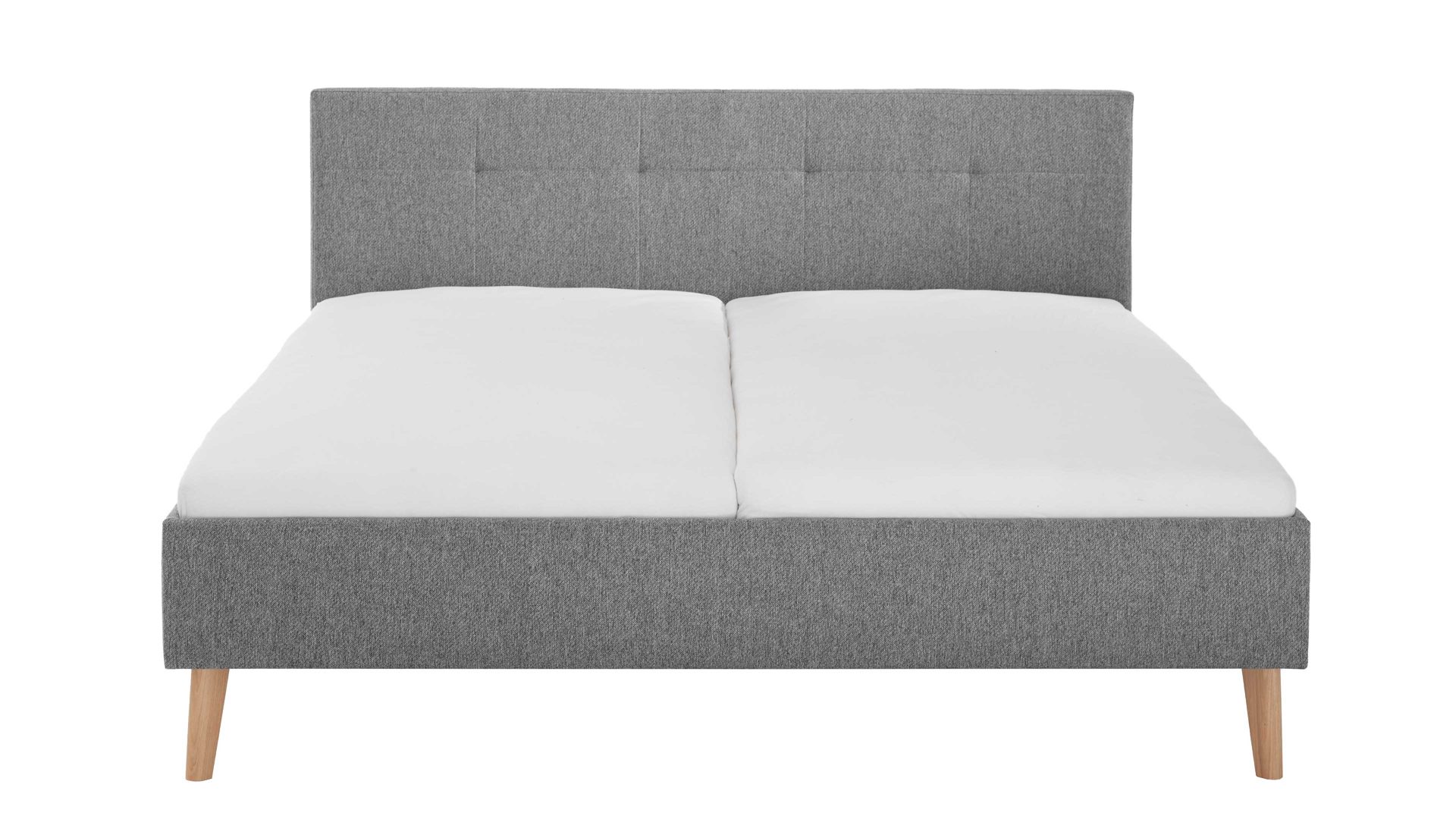 Das Polsterbettgestell Jazz ist gemütlich und stilvoll designt. Mit dem edlen grauen Stoffbezug und den eichefarbenen Holzfüßen strahlt es Eleganz mit einer Prise Natürlichkeit aus. Zu den Höhepunkten gehört das gesteppte Polsterkopfteil. Es verleiht dem Bett das gewisse optische Etwas und gibt Ihnen beim Lesen oder Fernsehen eine bequeme Anlehnmöglichkeit. Die Bettseiten sind glatt bezogen.