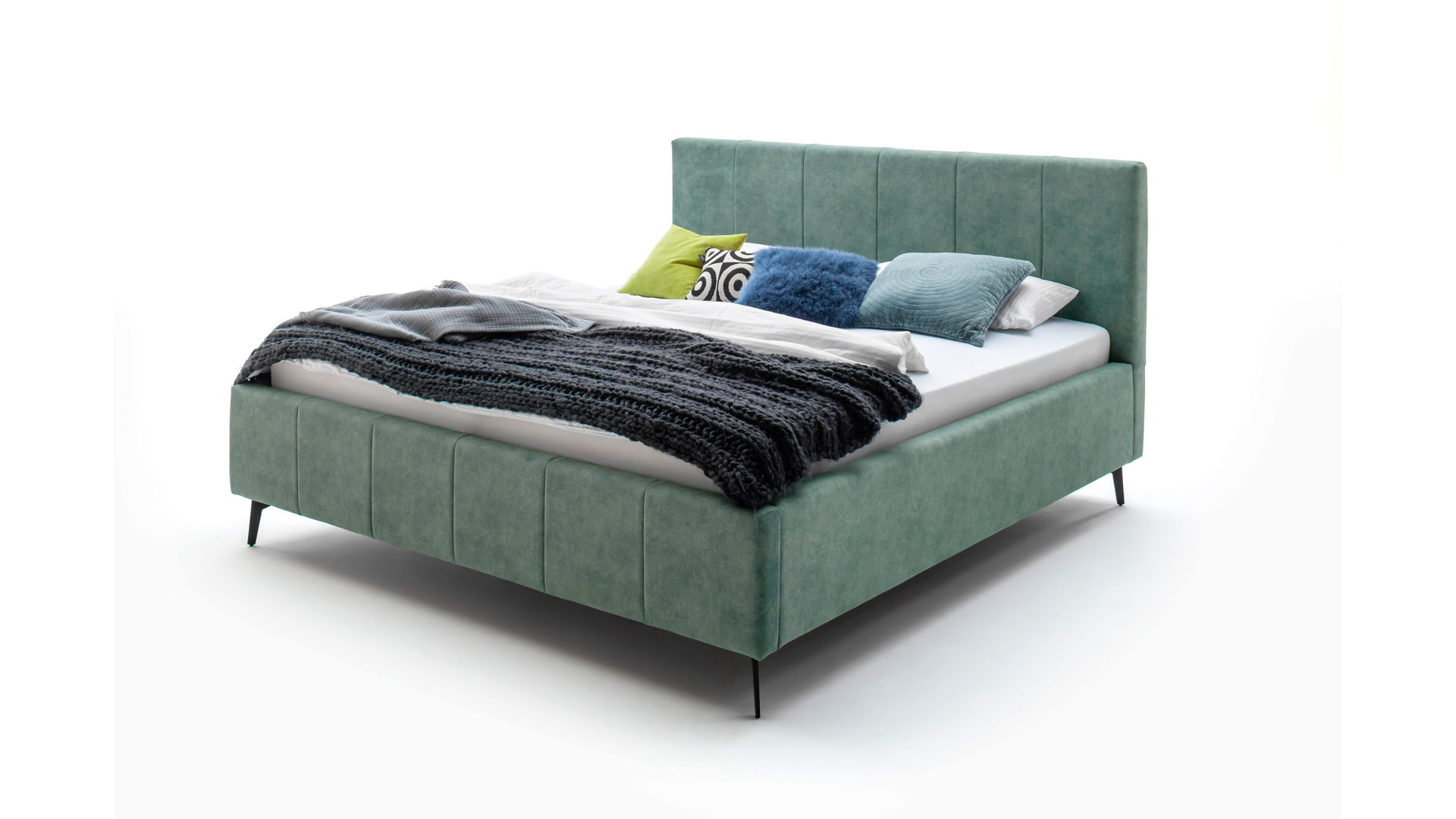 Das Polsterbettgestell Lizzano kommt im zeitlos schicken Design. Von den filigranen, schwarz lackierten Metallfüßen bis hin zum grünen Samtbezug Cloud 33 strahlt das Bett eine dezente Eleganz aus. Damit passt es in nahezu jedes Interieur: Mit einer romantisch angehauchten Schlafzimmereinrichtung harmoniert es ebenso wie mit geradlinigem Minimalismus.
