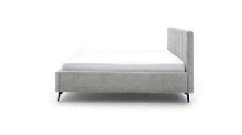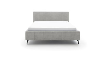 Das Polsterbettgestell Lizzano kommt im zeitlos schicken Design. Von den filigranen, schwarz lackierten Metallfüßen bis hin zum hellgrauen Samtbezug Cloud 81 strahlt das Bett eine dezente Eleganz aus. Damit passt es in nahezu jedes Interieur: Mit einer romantisch angehauchten Schlafzimmereinrichtung harmoniert es ebenso wie mit geradlinigem Minimalismus.