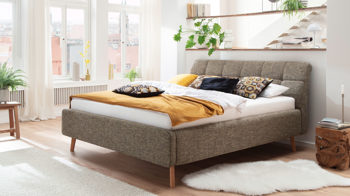 Das Highlight stellt das gesteppte, leicht gerundete Kopfteil dar. Dadurch erhält das Polsterbettgestell ein sanftes und besonders wohnliches Aussehen und passt zu verschiedensten Einrichtungsstilen.