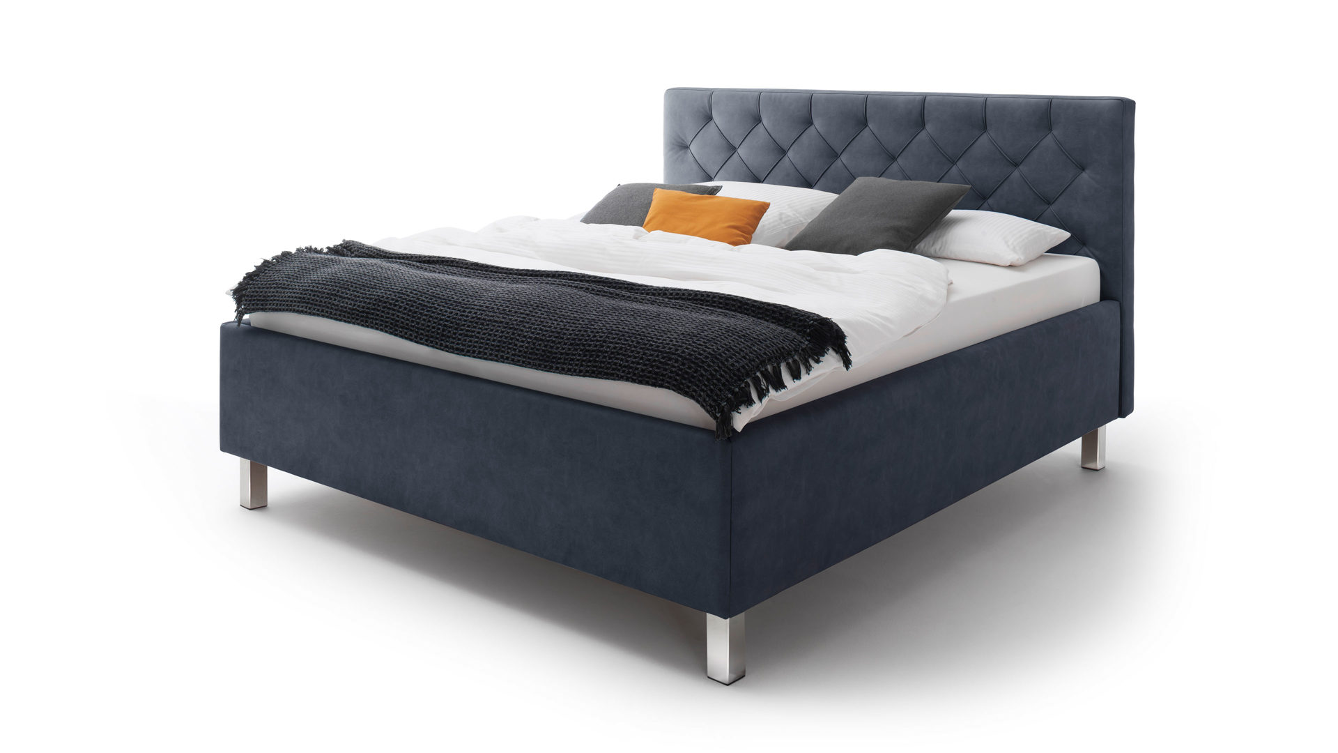 Das Polsterbettgestell San Remo bringt einen zeitlosen Chic mit. Sein taubenblauer Mikrofaserbezug Bulus 16 trifft auf Metallfüße in einem hellen Chrom-Ton. Abgerundet wird das edle Design von dem gesteppten Kopfteil mit Rautenmuster. Es entsteht ein stilvoller Look voll frischer Eleganz.