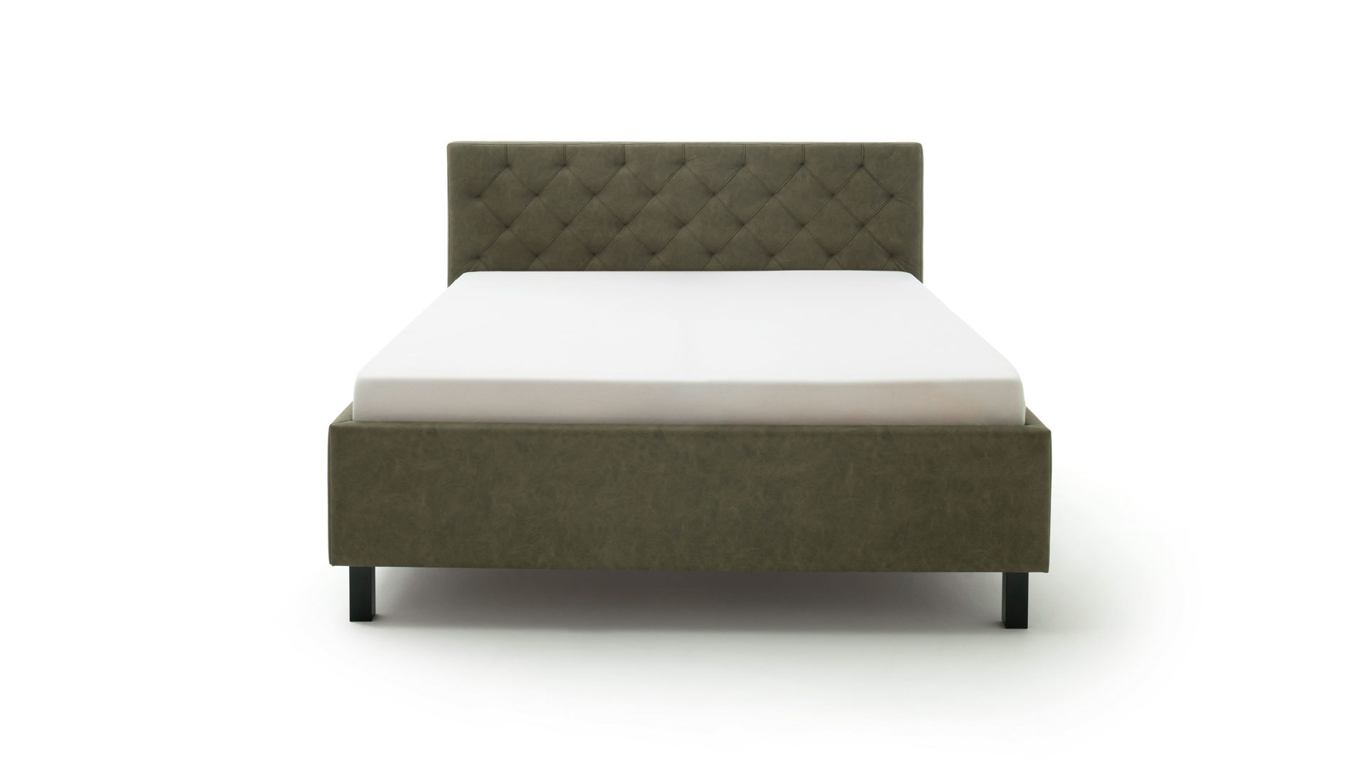 Das Polsterbettgestell San Remo bringt einen zeitlosen Chic mit. Sein grüner Mikrofaserbezug Bulus 17 trifft auf Holzfüße in dezentem Schwarz. Abgerundet wird das edle Design von dem gesteppten Kopfteil mit Rautenmuster. Es entsteht ein stilvoller Look voll frischer Eleganz.