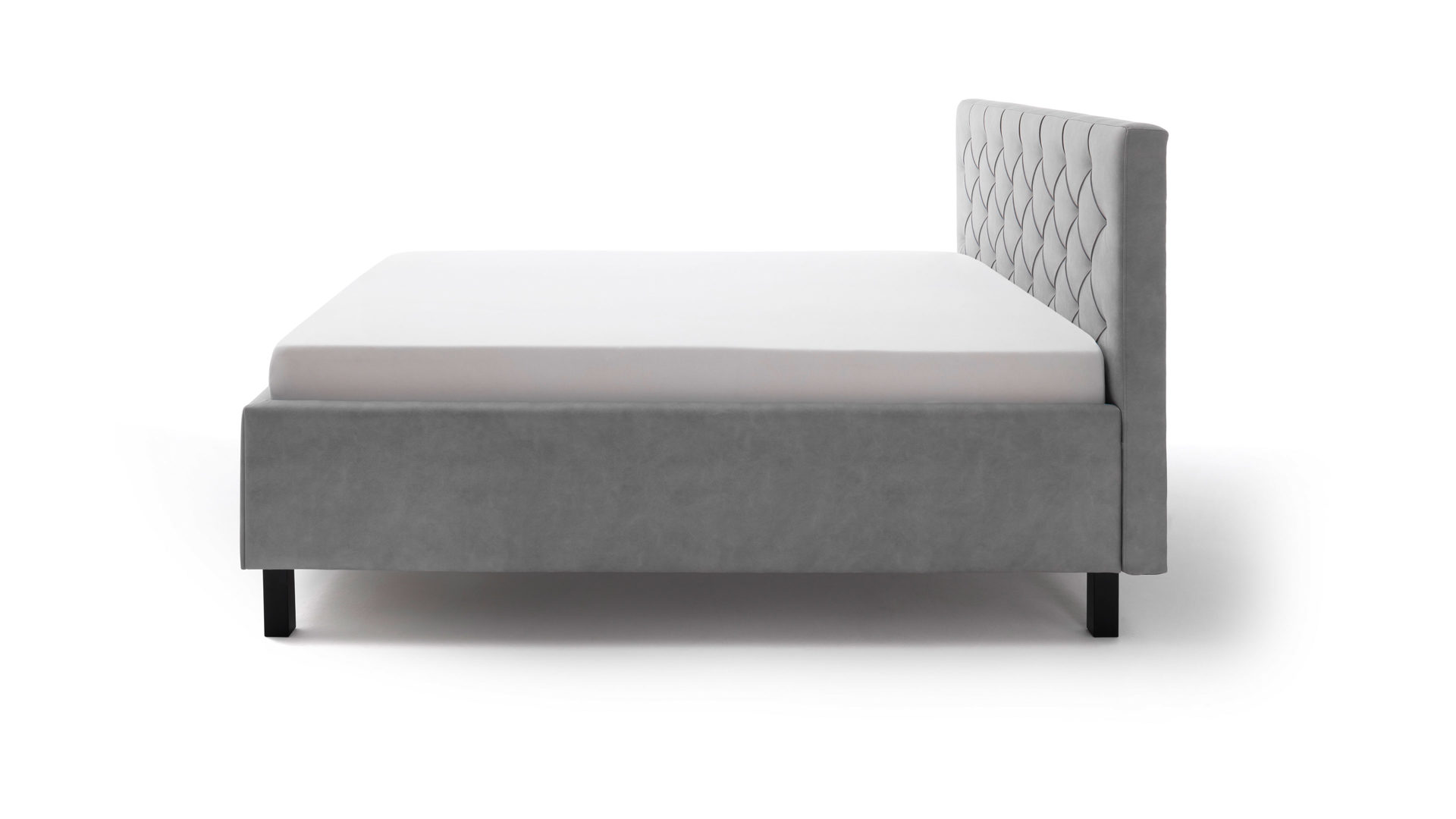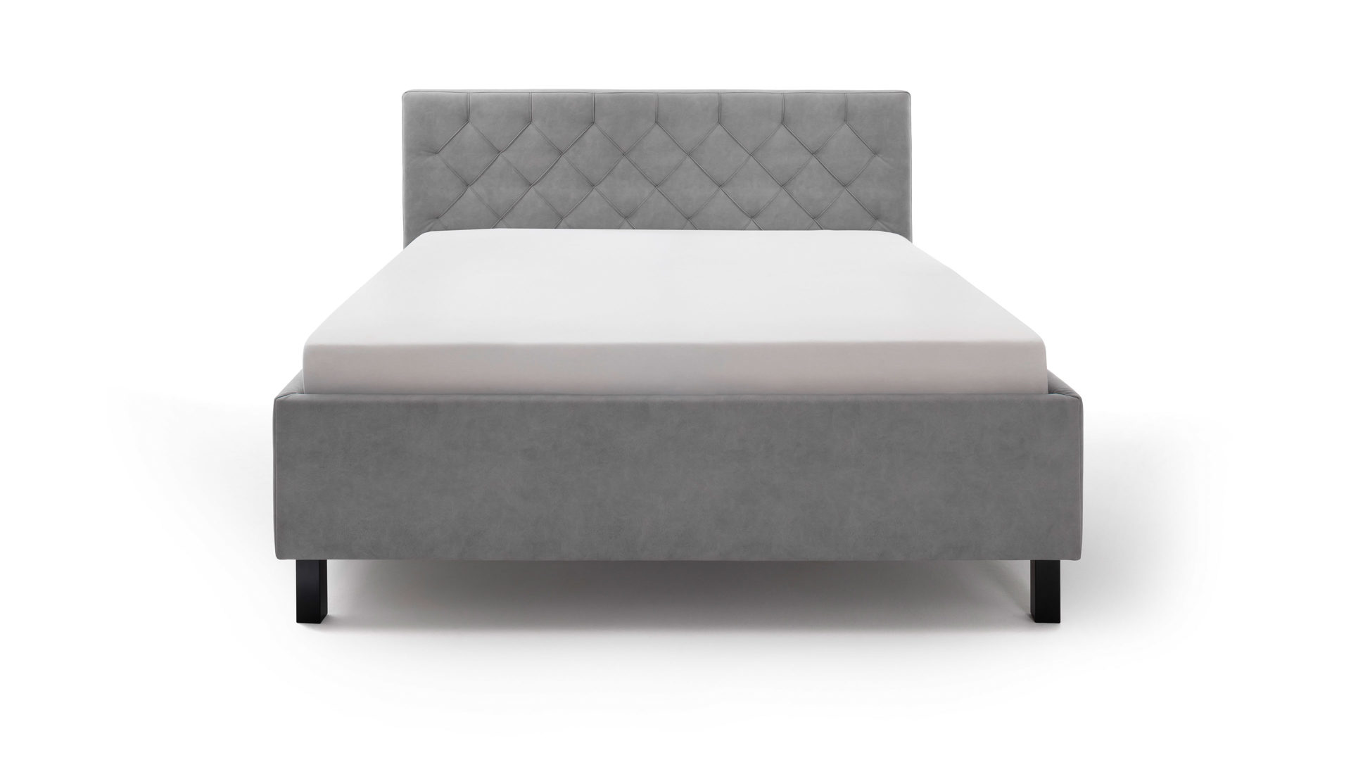 Das Polsterbettgestell San Remo bringt einen zeitlosen Chic mit. Sein hellgrauer Mikrofaserbezug Bulus 32 trifft auf Holzfüße in dezentem Schwarz. Abgerundet wird das edle Design von dem gesteppten Kopfteil mit Rautenmuster. Es entsteht ein stilvoller Look voll frischer Eleganz.
