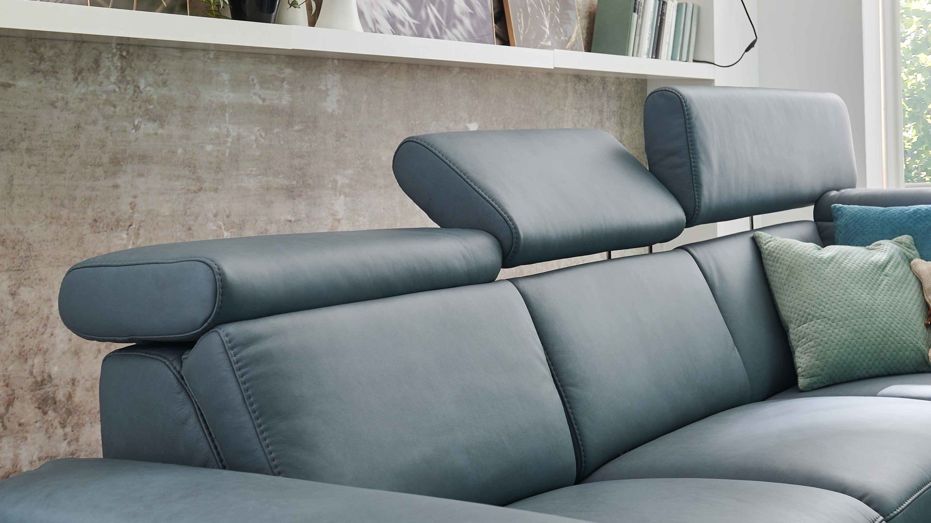 Diese Kopfteilverstellung ist eine praktische Mehrpreis-Funktion für alle Elemente mit Kopfpolster aus dem Polsterprogramm Relaxa 6.0 Plus PSG XC.