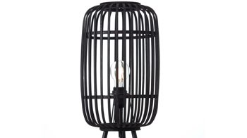 Details schwarze Metall-Lampenfüße dunkler Bambus-Lampenschirm Schnurschalter     Maße Breite ca. ...