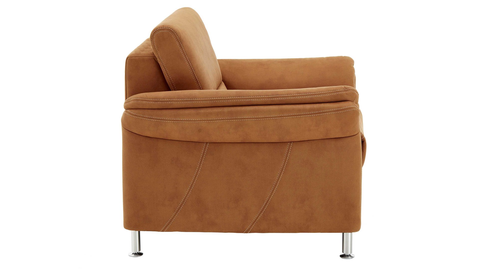 Der Modulmaster Polstersessel MM-ZE1049 besticht in erster Linie durch sein schönes Design. Denn ein ganz besonderer Blickfang ist der zimtfarbene Stoffbezug in Kombination mit den alufarbenen Metallfüßen.