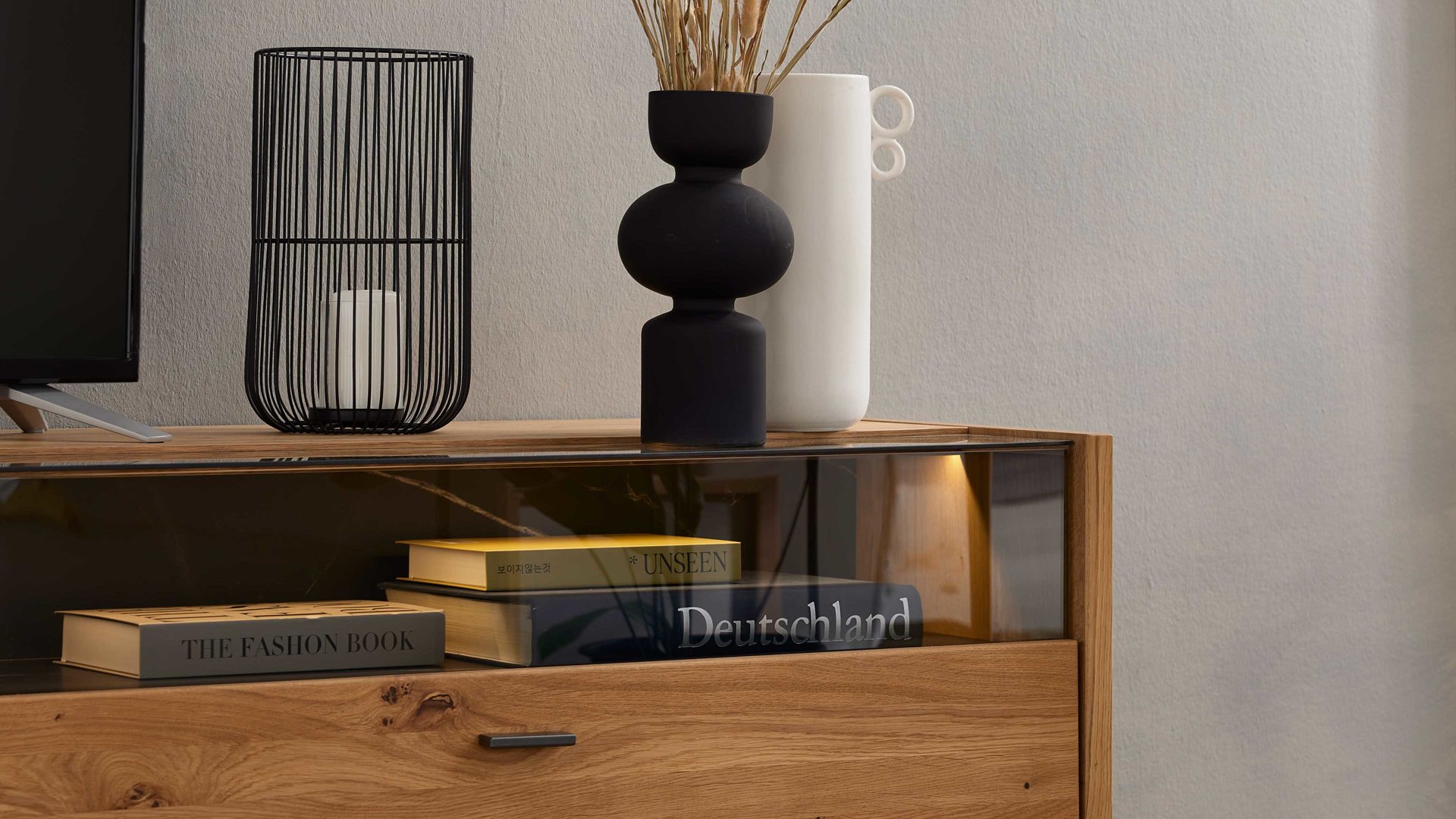 Streifenbeleuchtung für das Lowboard 02 aus der Interliving Wohnzimmer Serie 2027 – stimmungsvolle Akzente mit LED-Technik