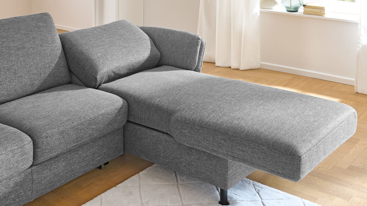 Wie von Zauberhand bringen Sie die Rückenlehne mit motorischer Unterstützung in eine waagerechte Position - im Handumdrehen ist das Polstermöbel bereit für eine kleine Auszeit. Die Länge erweitert sich so von ca. 168 cm auf ca. 204 cm. Ganz bequem wird die Liegefunktion über zwei seitlichen Snsoren gsteuert.