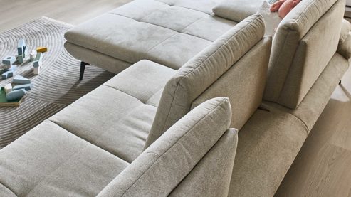 Sofas mit oder ohne Funktionen und in vielen Bezugvarianten erhältlich, die Rückseiten sind immer im Originalstoff bezogen