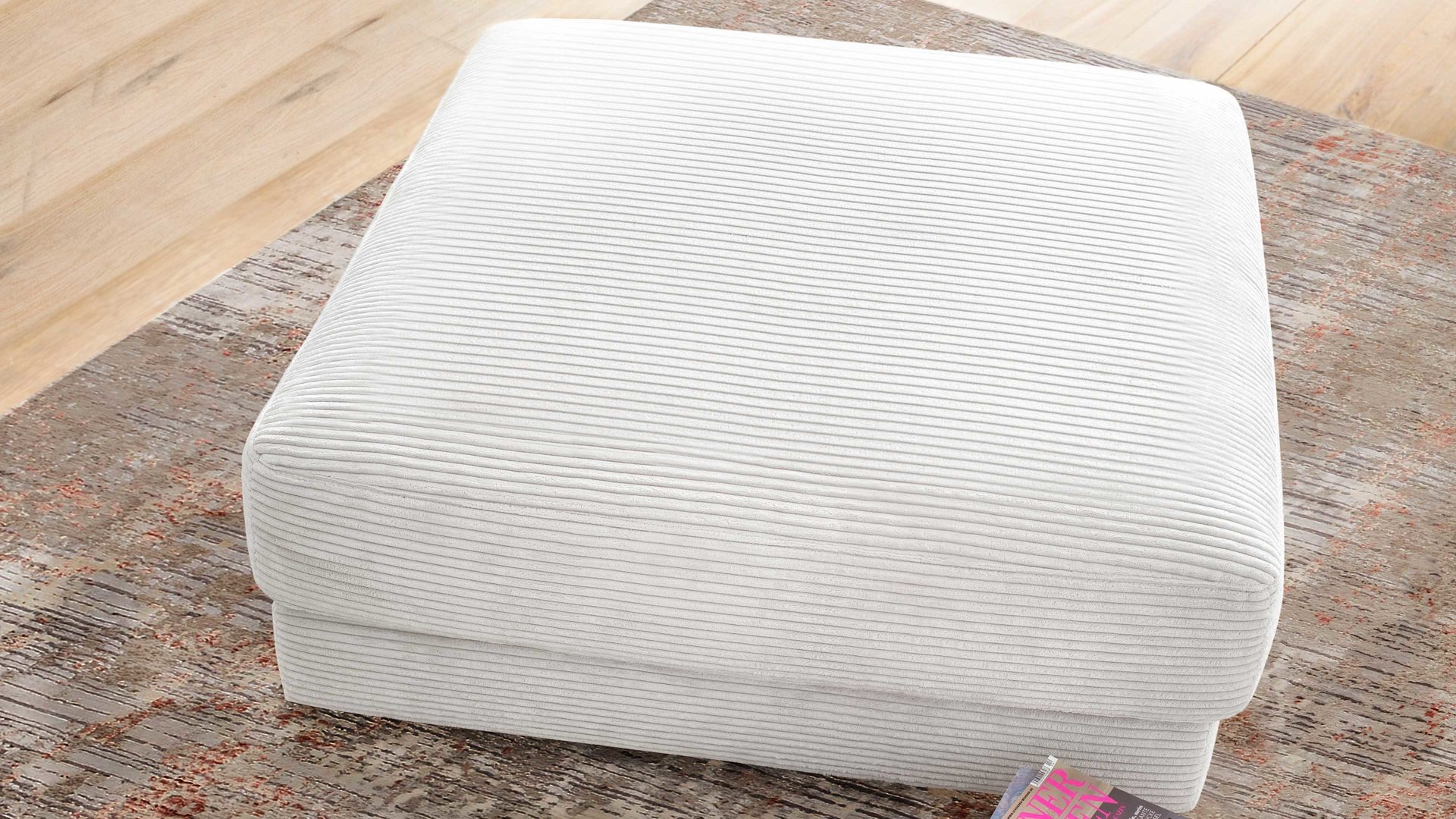 Das Bigsofa aus dem Polsterprogramm SOFAkultur Seventies ist mit hellblauem Cord bezogen und mit schwarzen Kunststoff-Gleitfüßen versehen. Es strahlt Modernität und Gemütlichkeit aus. Dank der schichtweise aufgebauten PUR-Schaumpolsterung auf einer gut stützenden Wellenunterfederung bietet der 3-Sitzer hohen Sitzkomfort. Dazu tragen auch die losen Rückenkissen mit Inlett bei.