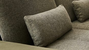 Die spezielle Kombination aus oliv- und khakifarbenen Stoffbezügen sorgt für ein edles Design. Mattschwarze Metallfüße runden die Optik stimmig ab und tragen überdies zur Stabilität der attraktiven Couch bei. Einen gelungenen Akzent setzt die gesteppte Sitzfläche. Der Rücken des Sofas ist glatt bezogen.