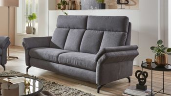 Die Federkernpolsterung auf einer angenehm stützenden Wellenunterfederung im Sitz und die Rückenpolsterung mit PUR-Schaum schaffen beste Voraussetzungen für hohen Komfort und tiefe Entspannung. Auf ca. 225/235 x 108/111 x 105 cm (LxHxT) belaufen sich die Maße des leger gepolsterten Dreisitzers, der eine Sitzhöhe von ca. 46 cm und eine Sitztiefe von ca. 55 cm bietet.