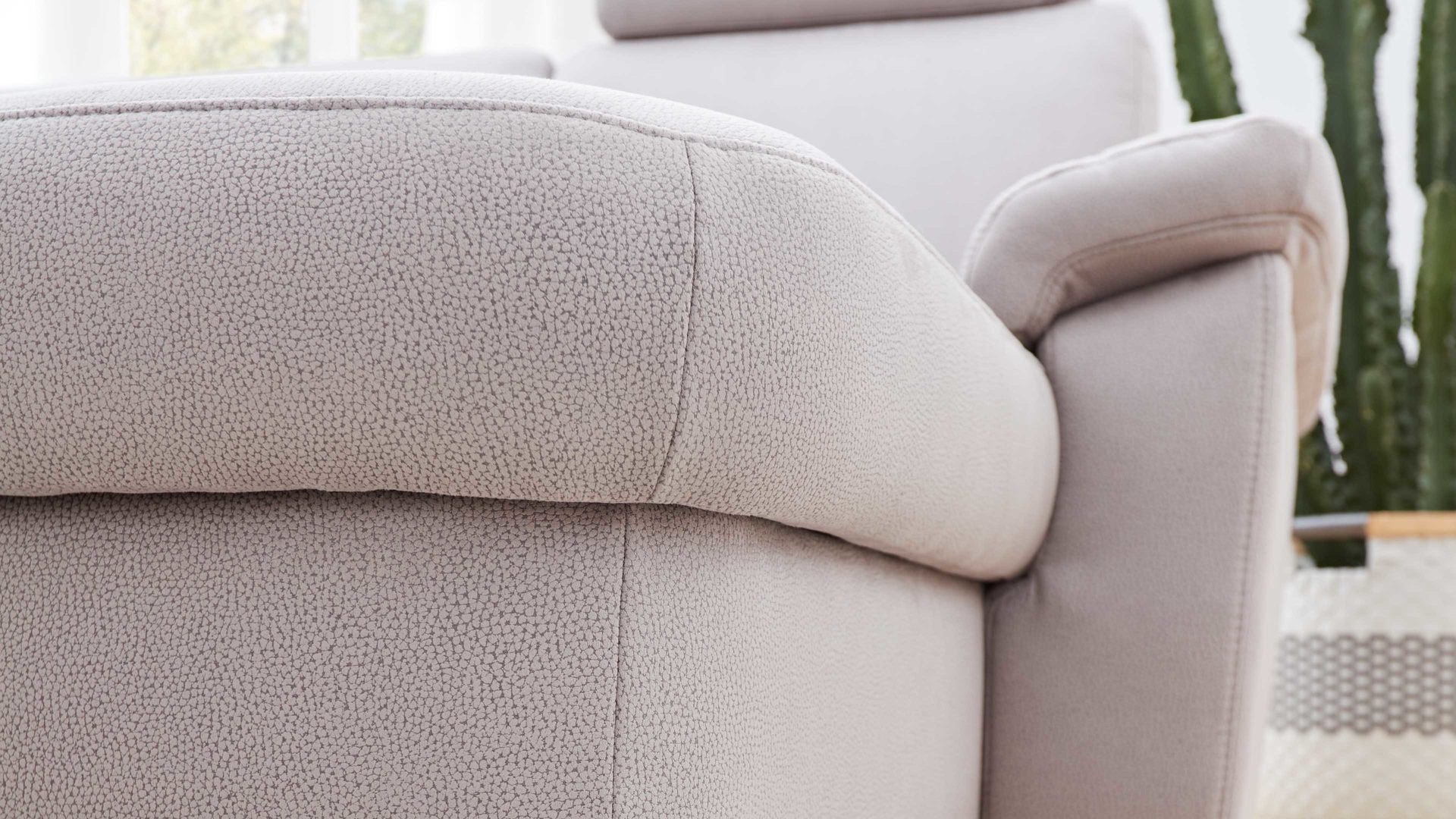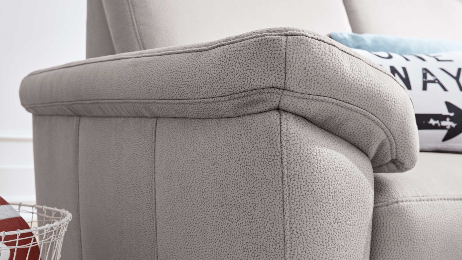 Das schicke Modulmaster Ecksofa MM-ZE1059 mit geprägtem alufarbenem Mikrofaserbezug und matten Metallfüßen lädt zum Sitzen, Liegen und Relaxen ein. Die Eckcouch in U-Form besteht aus einem Zweisitzer mit einem Armteil an der linken Seite, einer Rundecke, einem 2,5-Sitzer ohne Armteil und einem Canape mit einem Armteil an der rechten Seite.