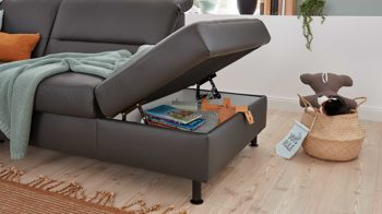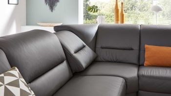 Kombiniert verleihen die wertigen Materialien und perfekt aufeinander abgestimmten Farben der Polsterecke eine moderne und elegante Ausstrahlung.