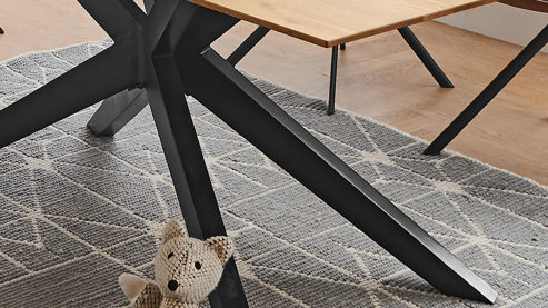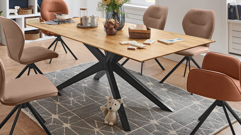 Der NIEHOFF Massivholz-Esstisch Cloudy zeichnet sich durch hohe Qualität sowie moderne Designmerkmale aus. Er kombiniert ein markantes, klassisch mattschwarz lackiertes Sterngestell aus robustem Eisen mit einer Massivholzplatte aus Charakter-Eiche und fügt sich in verschiedene Wohnstile harmonisch ein.