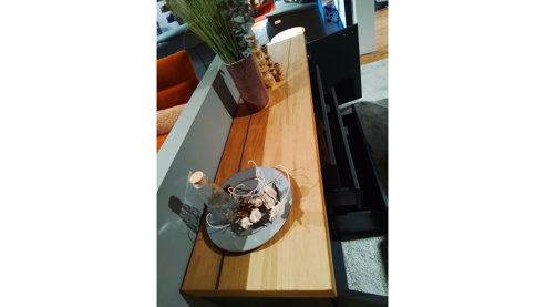 Das Möbelspektrum reicht von einem Low- und einem Highboard über eine Vitrine und ein Wandregal bis hin zu einem Couch- und einem Funktionsesstisch. Sämtliche Elemente kommen im gleichen Design daher, sodass Sie Ihr Wohnzimmer einheitlich einrichten können.