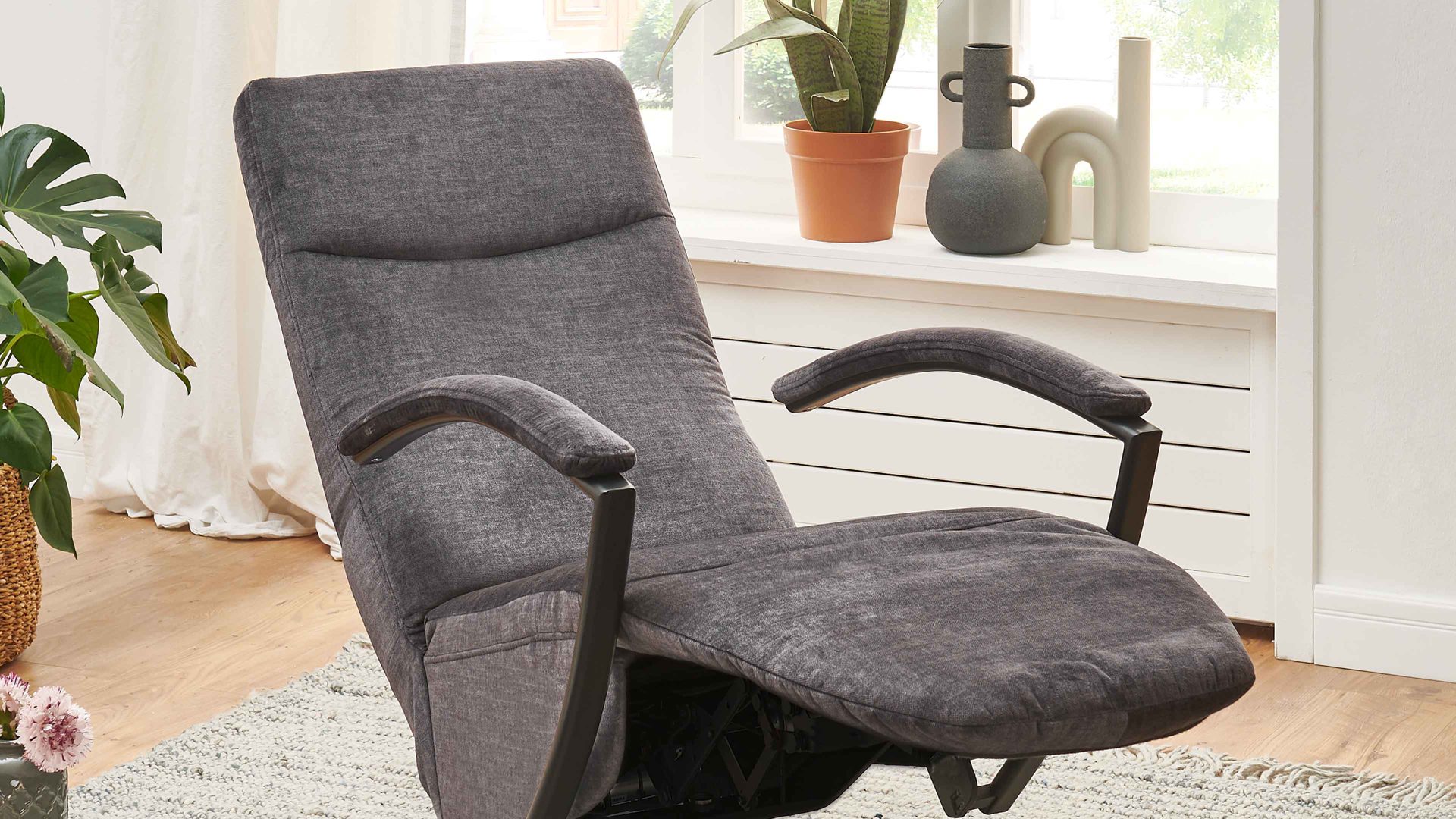 Das Highlight des Sessels bildet die manuelle Relaxfunktion: Leichter Körperdruck führt dazu, dass sich der Rücken senkt. Dabei geht der Sitz automatisch nach vorn und oben. Parallel fährt die Beinauflage nach oben bis in die Relaxposition. Zudem begeistern das einfach per Hand stufenlos verstellbare Kopfteil mit Rasterbeschlag, Rückholfeder und Faltenoptimierung sowie die Drehbarkeit um 360 Grad.