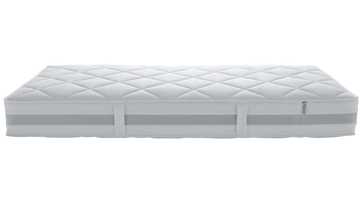 Im Inneren arbeitet ein 7-Zonen-AQUAPUR®-Taschenfederkern mit rund 500 einzeln gelagerten Federn, die deinen Körper punktgenau abstützen. So wird jede Körperzone – von Schultern bis Füße – optimal entlastet und ergonomisch korrekt gelagert. Die beidseitig integrierten AQUAPUR®-Schaumplatten fördern die Luftzirkulation im Inneren der Matratze und sorgen so für ein angenehm trockenes, ausgeglichenes Schlafklima.