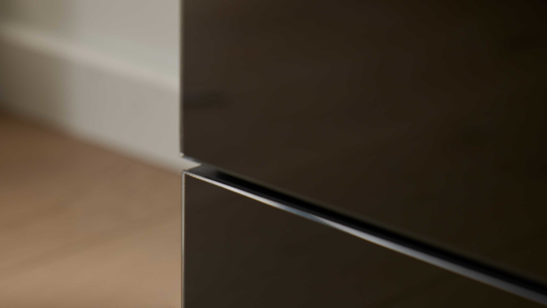 Schubladenkommode aus der Interliving Kleiderschrank Serie 1208 – edler Look in Schwarzglas und Atlantic-Eiche