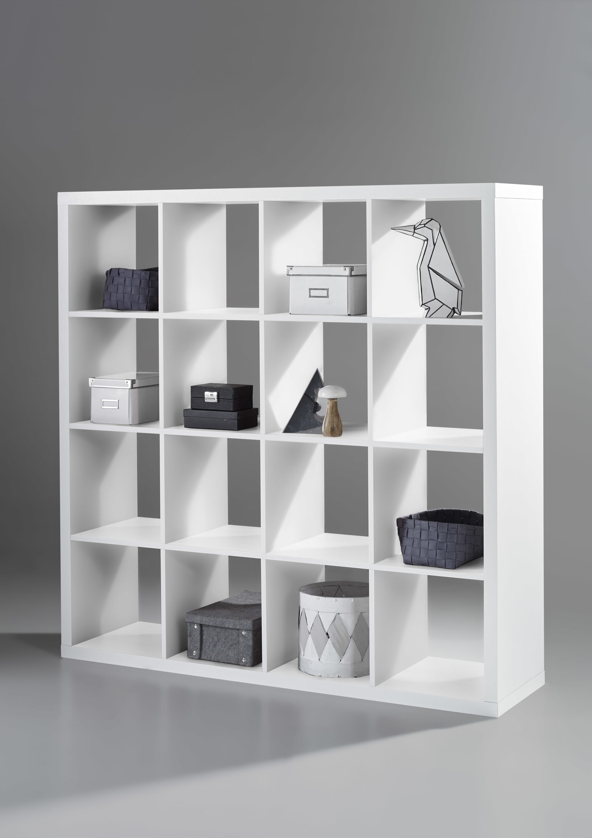 Geradliniges Design trifft bei diesem Regal auf ein ausgezeichnetes Material und eine helle, freundliche Farbe. Das Wandregal besticht mit einer mattierten Oberfläche in Weiß. Lassen Sie sich von den vielen Einsatzmöglichkeiten des Standregals begeistern. Zum einen ist es das perfekte Bücherregal, wenn Sie es zum Beispiel direkt an die Wand stellen. Zum anderen ist es ein stilvoller Blickfang und gleichzeitig ein außergewöhnlicher Raumteiler, wenn Sie es mitten im Raum aufstellen. Gleichzeitig können Sie es als Wohnzimmermöbel nutzen und strukturieren mit dem Raumtrenner Ihre Wohnlandschaft. Dadurch gewinnen Sie ein wohnliches Ambiente. Mit insgesamt 16 Fächern haben Sie außerdem viel Platz, um das Fächerregal zu dekorieren und als funktionalen Ordnungshelfer einzusetzen. Das Modell hat eine Bodenstärke von ca. 16 mm und ist insgesamt ca. 147 x 147 x 38 cm (BxHxT) groß.