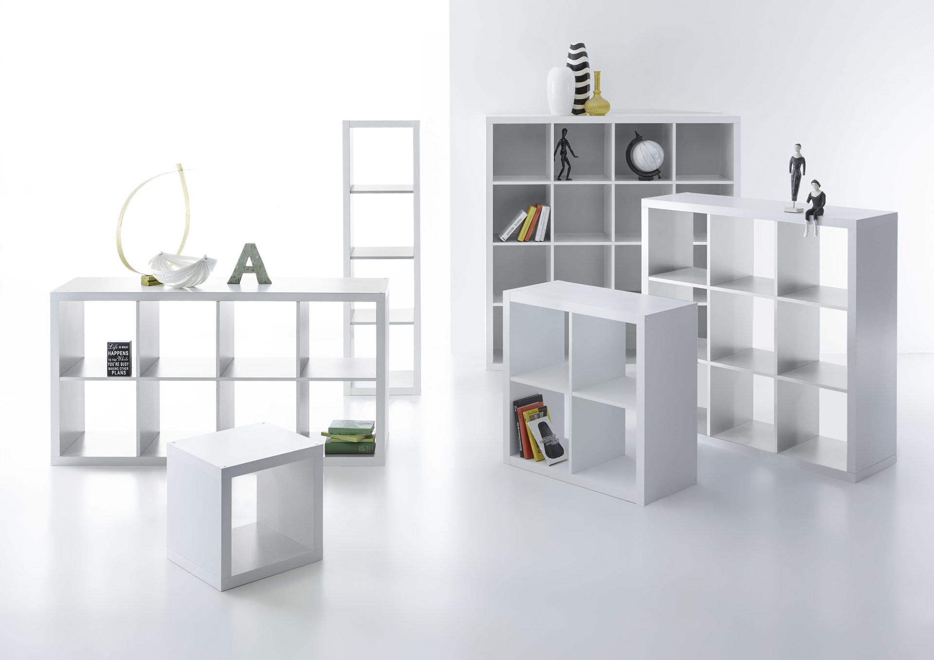 Das Standregal besticht mit einer mattierten Oberfläche in Weiß, die hervorragend Ihre Einrichtung komplettiert. Auch als Büromöbel einsetzbar, stellen Sie den Raumteiler neben den Schreibtisch und sortieren Ihre Ordner in die insgesamt vier Fächer. Das Modell ist ca. 77 x 77 x 38 cm (BxHxT) groß und hat eine Bodenstärke von ca. 16 mm.