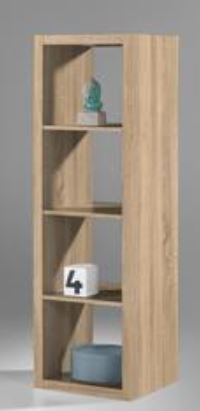 Formschöner Raumteiler für viele Gestaltungsmöglichkeiten. Regal mit 4 Einlegefächern.