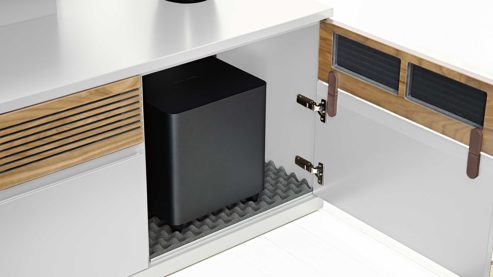 Die Vision Wohnkombination beeindruckt mit mattweißen Lackoberflächen und akzentuierendem Eichefurnier im Farbton Sand. Durch die helle Farbgebung strahlt die Wohnwand herrlich warmen, einladenden Charme aus. Speziell sind überdies die grifflosen Fronten. Zum Öffnen und Schließen der Türen, Klappen, Auszüge und Schubladen dienen unauffällige, praktische Griffleisten.