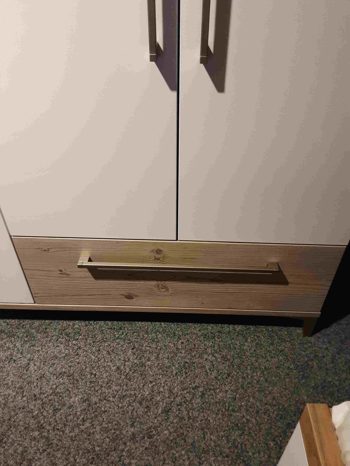 • Die Abbildung zeigt ein Wohnbeispiel, welches auch Dekoration sowie separat erhältliches Zubehör enthält. Im Lieferumfang enthalten ist ein Kleiderschrank.