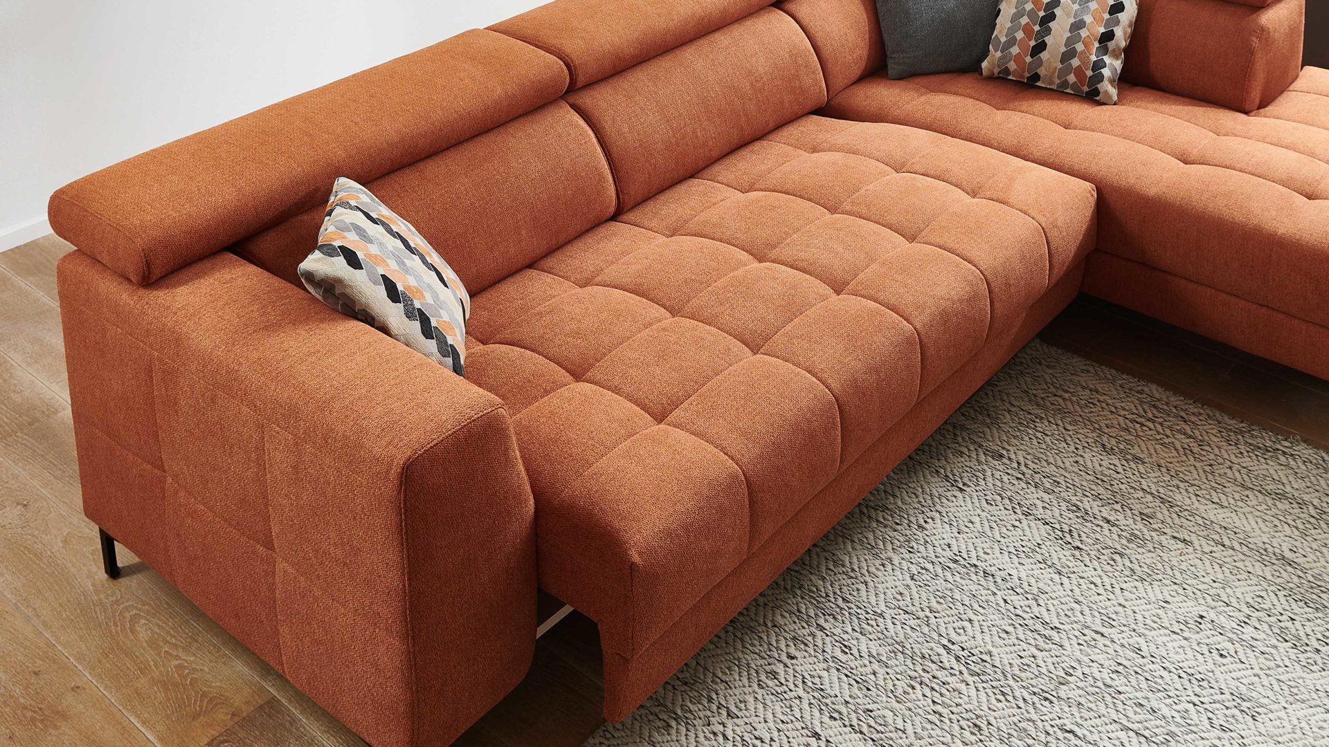 Profitieren Sie vom praktischen Sitzkomfort der Eckcouch, denn der mit Nesselstoff bezogene Rücken und die Nosagunterfederung mit Schaumpolsterung garantieren behagliche Abende auf Ihrem neuen Sofa. Die Couch ist individuell planbar und gegen Mehrpreis auch mit Funktionen erhältlich.