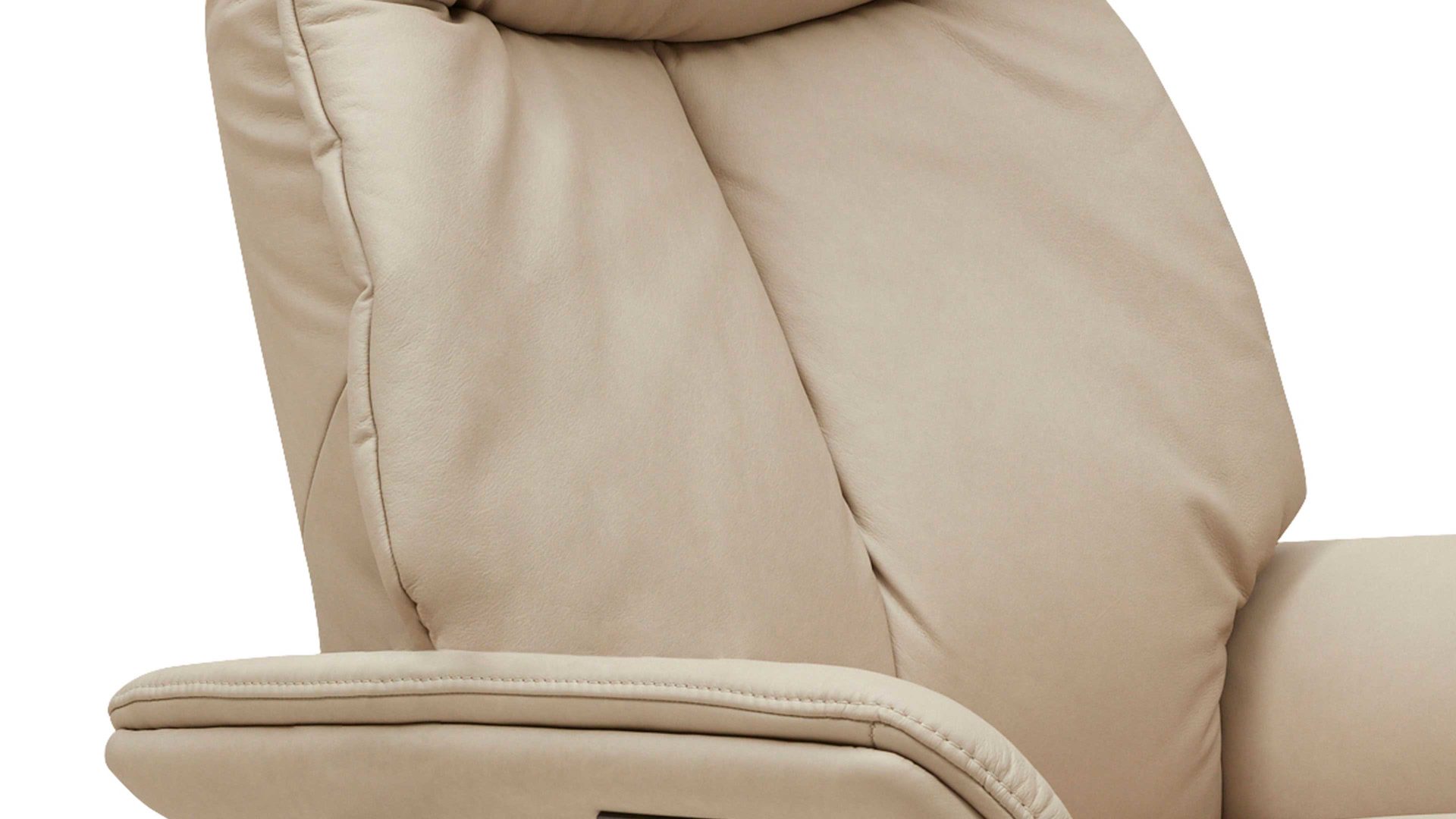 Der Drehsessel aus der Interliving Sessel Serie 4562 verbindet elegantes Design mit höchstem Sitzkomfort. Mit seinem klifffarbenen LongLife-Lederbezug und dem Tellerfuß in biancofarbener Wildeiche mit edelstahlfarbenem Akzent setzt dieser Relaxsessel stilvolle Akzente in deinem Wohnbereich – edel, natürlich und modern zugleich.