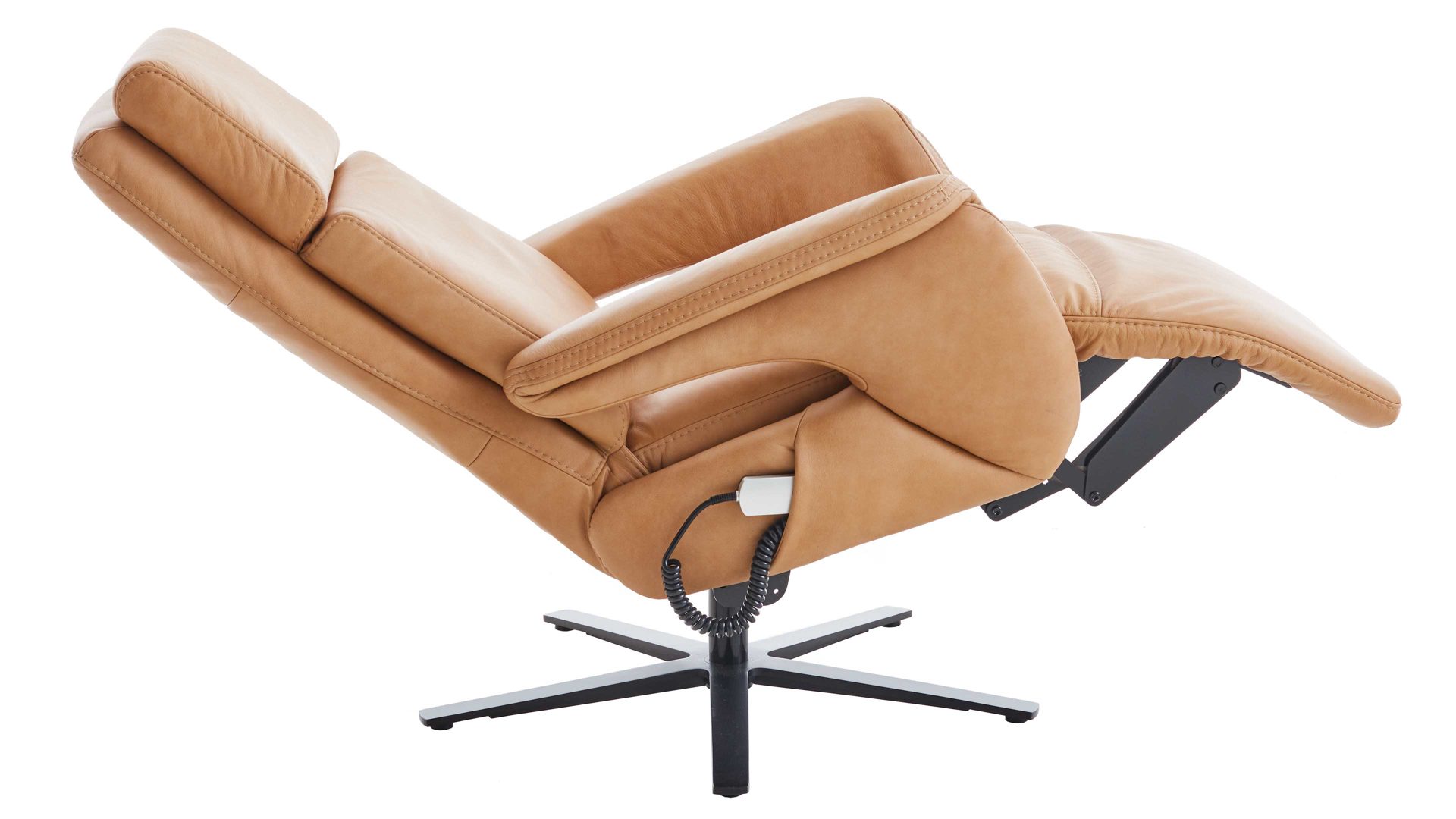 Zwei Motoren ermöglichen die getrennte oder synchrone Verstellung der Fußstütze und Rückenlehne zur Liegeposition. Ein Motor speist die separat verstellbare Sitzneigung.