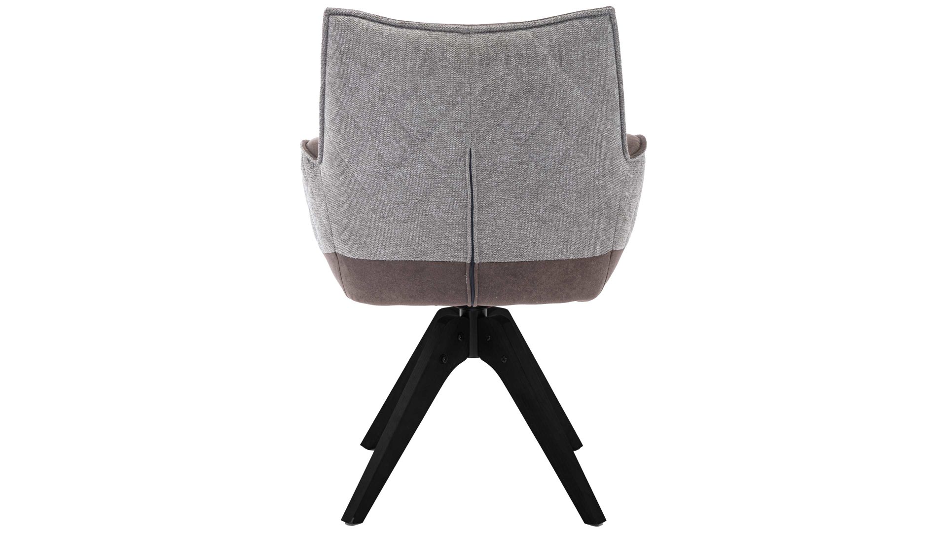 brauner Stoffbezug im Antikleder-Look, kombiniert mit beige-braun meliertem Stoffbezug mit Rautensteppung und mattschwarzem Metall