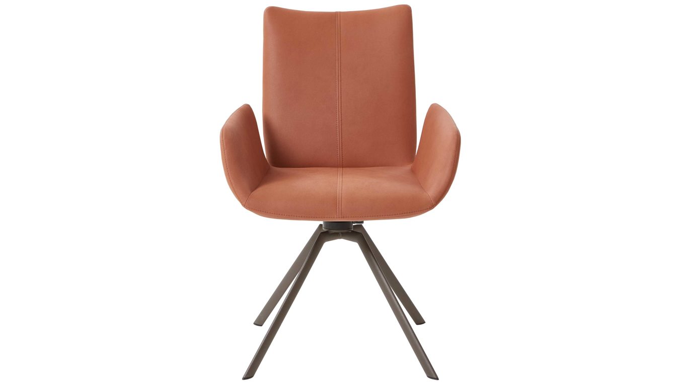 cognacfarbener Mikrofaserbezug in geprägter Lederoptik und sepiafarben pulverbeschichtetes Metall
