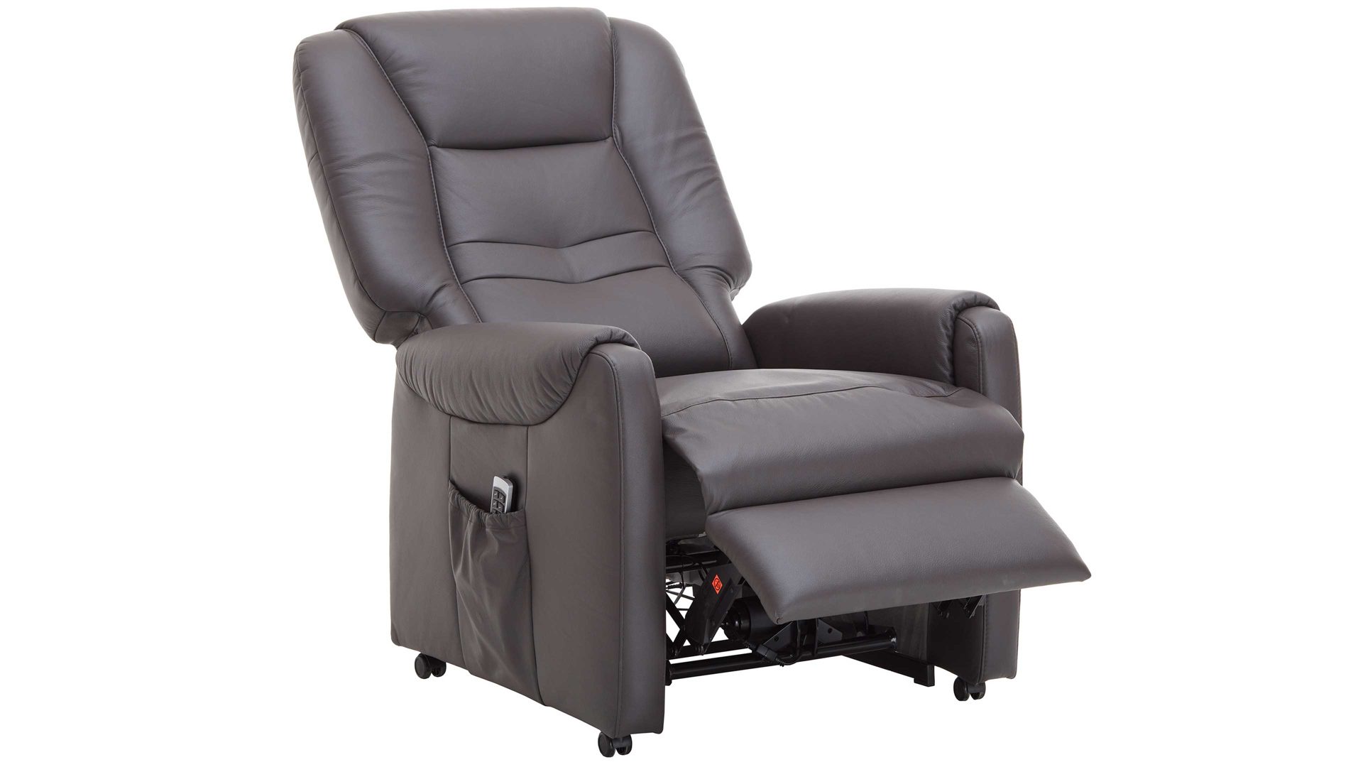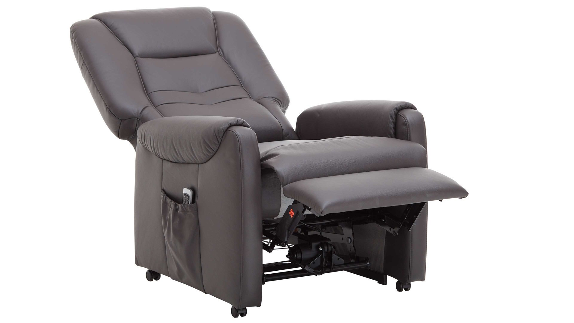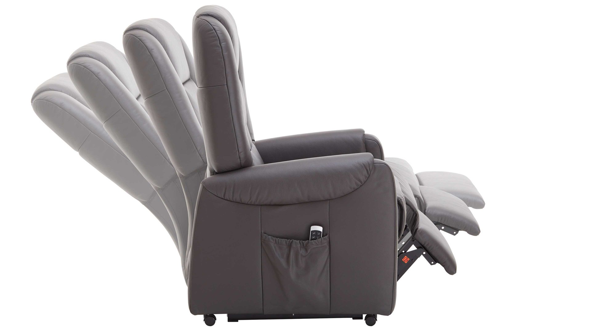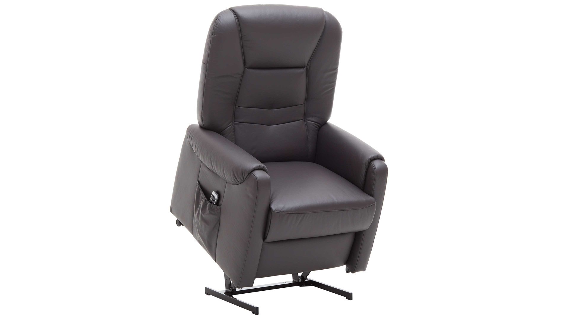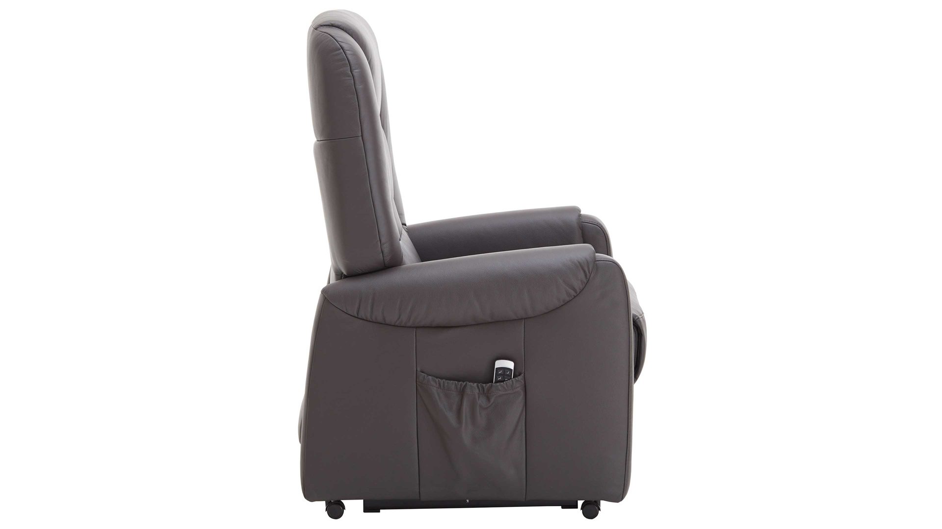 Dank der legeren Federkernpolsterung auf hochwertiger Wellenunterfederung im Sitz sowie der Schaumpolsterung im Rücken sitzen Sie auf dem Sessel der Ergonomiegröße M sehr bequem. Dazu tragen auch die verschiedenen elektrischen Funktionen bei. Der TV-Sessel bringt einen Motor mit. Dieser ermöglicht die synchrone, stufenlose Verstellung der Rückenlehne und des Fußteils von der Sitz- zur TV- und schließlich zur Liegeposition. Im komplett ausgefahrenen Zustand beträgt die Liegelänge ca. 177 cm. Mit der praktischen Fernbedienung lässt sich der Komfortsessel einfach steuern. Zur Aufbewahrung dieses nützlichen Zubehörs bietet das Möbel eine Seitentasche. Funktionsstark abgerundet wird der Sessel durch die elektrische Aufstehhilfe.