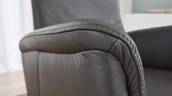 Dank der hochwertigen Polyätherschaumpolsterung auf einer Wellenunterfederung, der ergonomischen Rückenlehne C, den Vollpolster-Armlehnen 2 und der angenehmen Haptik des feinen Leders genießen Sie auf dem Fernsehsessel hohen Sitzkomfort.