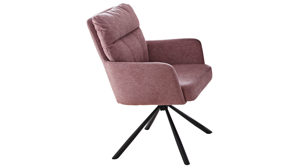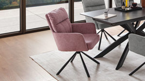 um 180 Grad drehbar, der Stuhl schwingt mit einer Rückholfunktion wieder in die ursprüngliche Position zurück