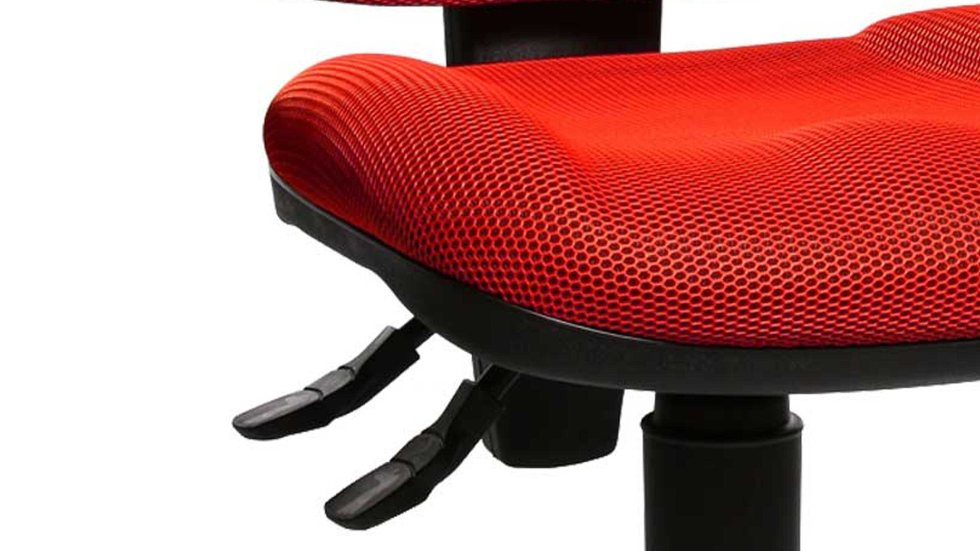 Obendrein besticht der Bürostuhl natürlich auch durch sein klassisches Design und die rot-schwarze Farbgestaltung. Dieser stilvolle Chefsessel zeichnet sich durch viele nützliche Eigenschaften aus. Die hohe Formschaum-Rückenlehne mit Wirbelsäulenausformung ist ergonomisch und stufenlos höhenverstellbar. Der Formschaum-Muldensitz und die Permanentkontaktmechanik zur Verstellung der Rückenlehnenneigung sind sehr komfortabel, wohingegen die lastabhängig gebremsten Sicherheitsdoppelrollen für Teppichböden ein weiteres praktisches Detail sind. Um das anspruchsvolle Gesamtbild abzurunden, verfügt dieser Drehstuhl zudem über eine stufenlose Sitzhöhenverstellung mit Toplift.