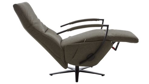 die Rückenlehne wird mit einem innenliegenden Bedienhebel und einer Gasdruckfeder in der Neigung verstellt, das Fußteil wird dabei in die Senkrechte geklappt