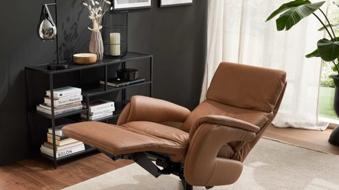 Der Drehsessel aus der Interliving Sessel Serie 4566 vereint elegantes Design, flexible Funktionen und höchsten Sitzkomfort – für alle, die Entspannung und Stil perfekt kombinieren möchten. In der Variante mit haselnussfarben pigmentiertem Lederbezug und einem mattschwarzen Metall-Sternfuß wird der Sessel zum echten Highlight in jedem Wohnbereich.