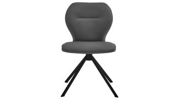 Er wirkt klassisch-schlicht, aber dennoch überraschend stilvoll. Dieses Modell verfügt über einen graphitfarbenen Webstoffbezug sowie über ein massives Wildeichenholz Stativ-Gestell. Eine weitere Besonderheit: Der Esszimmerstuhl ist um 180 Grad drehbar und mit einer Rückholfunktion ausgestattet.