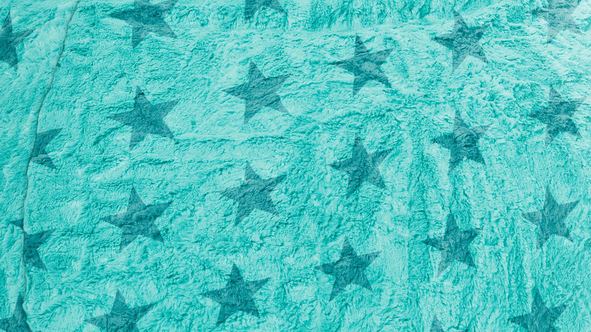 Kuscheliger türkiser Plüsch, petrolfarbene Sterne und kleine Polysterolkügelchen - gemütlicher geht es kaum!
