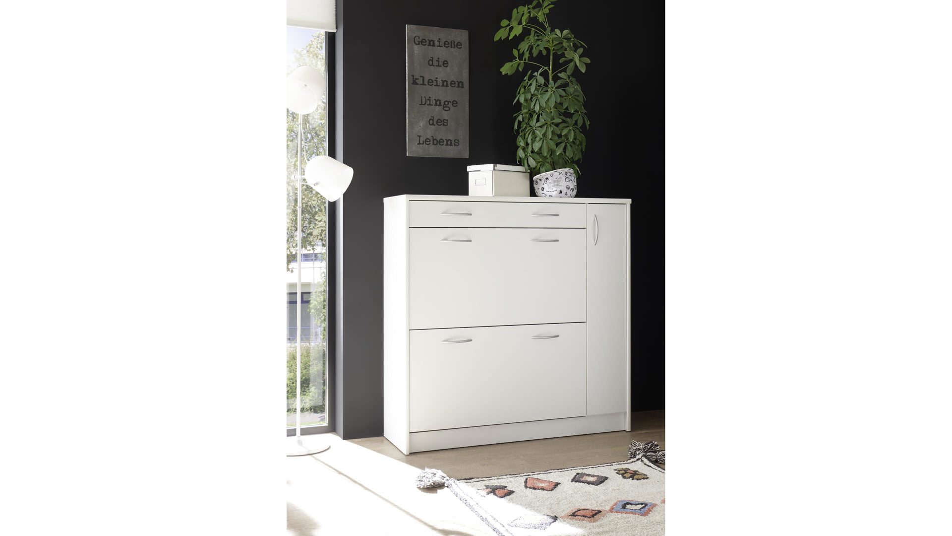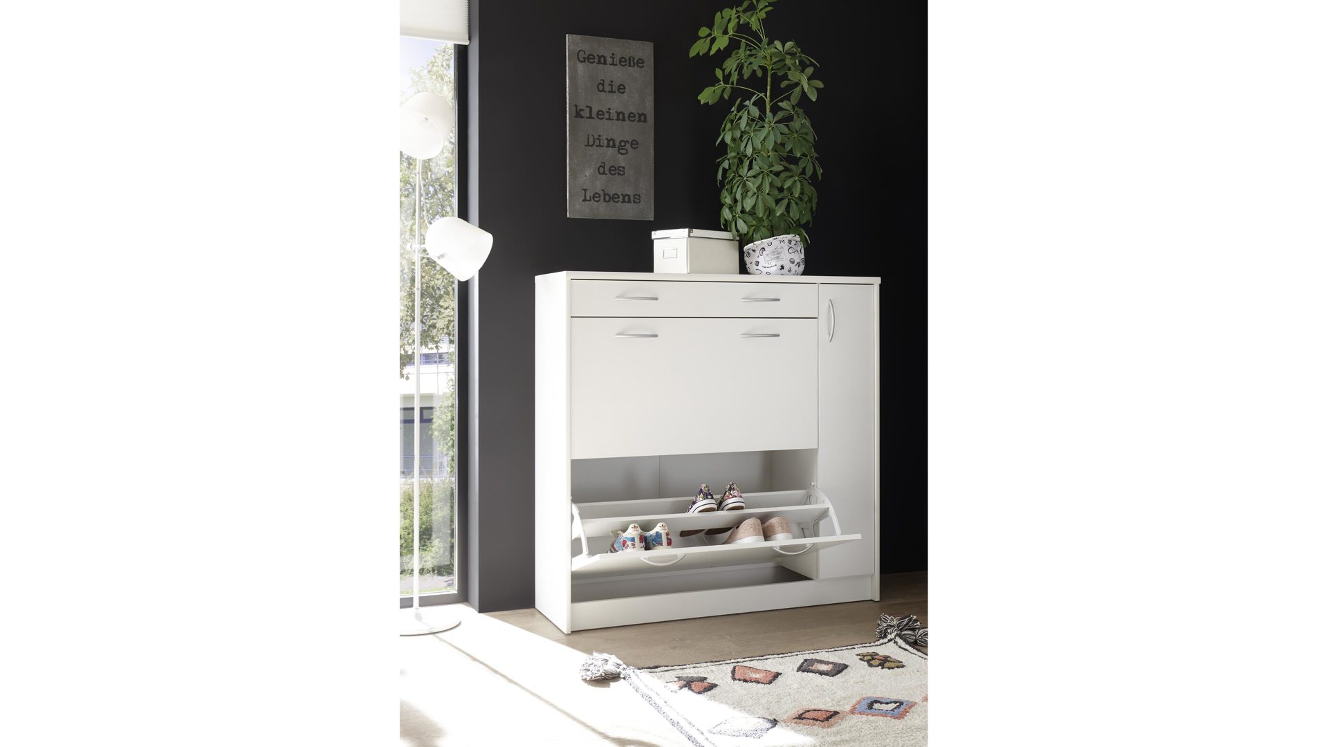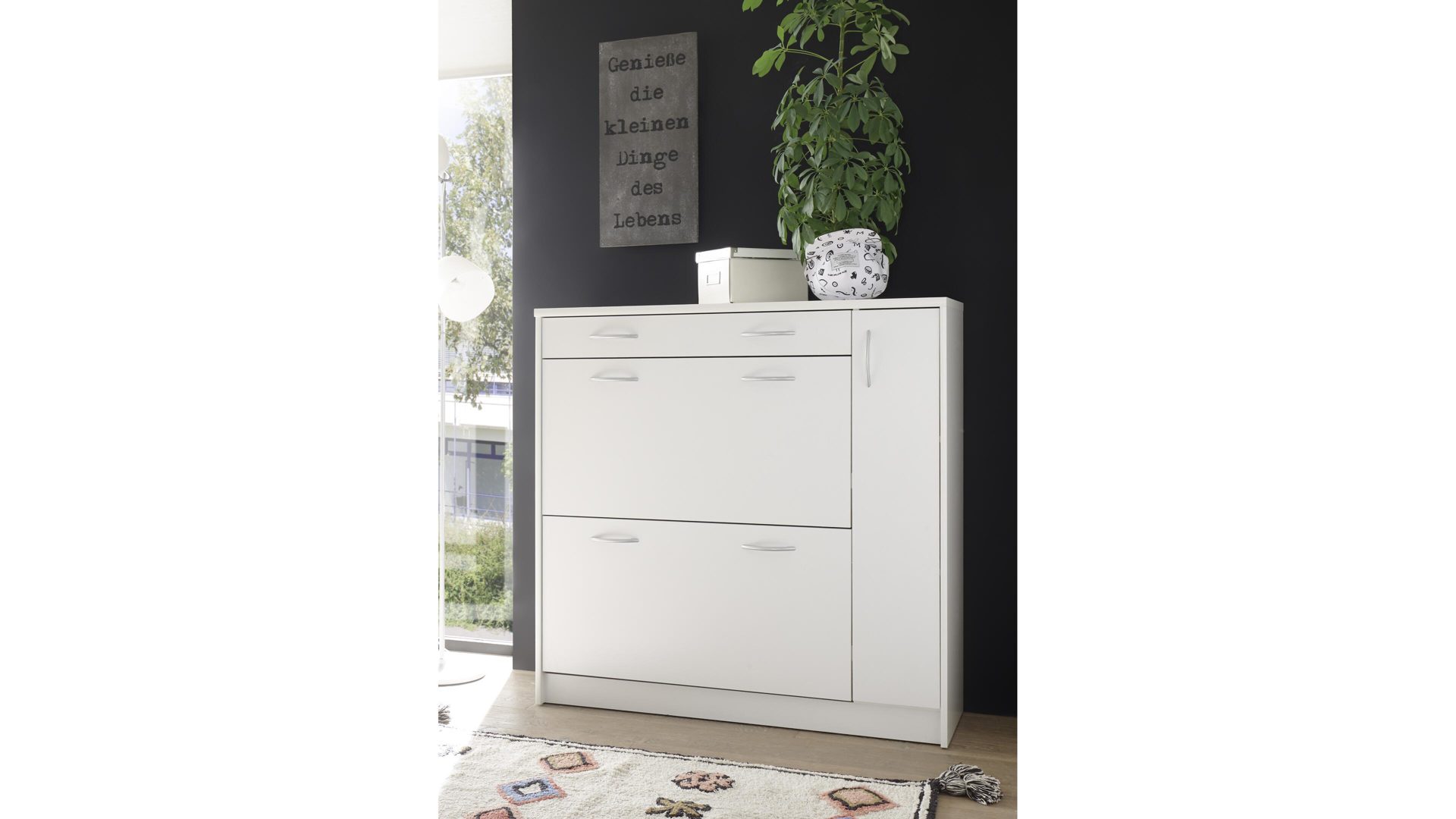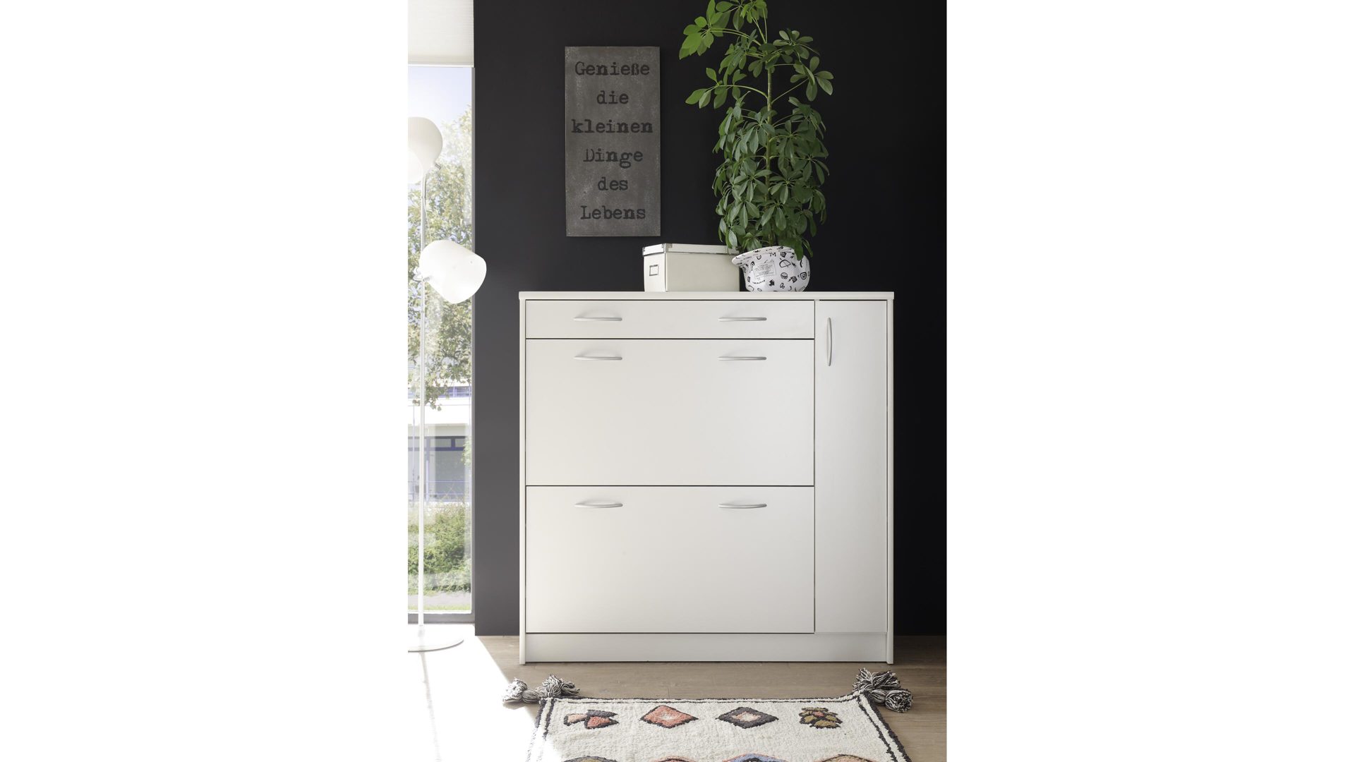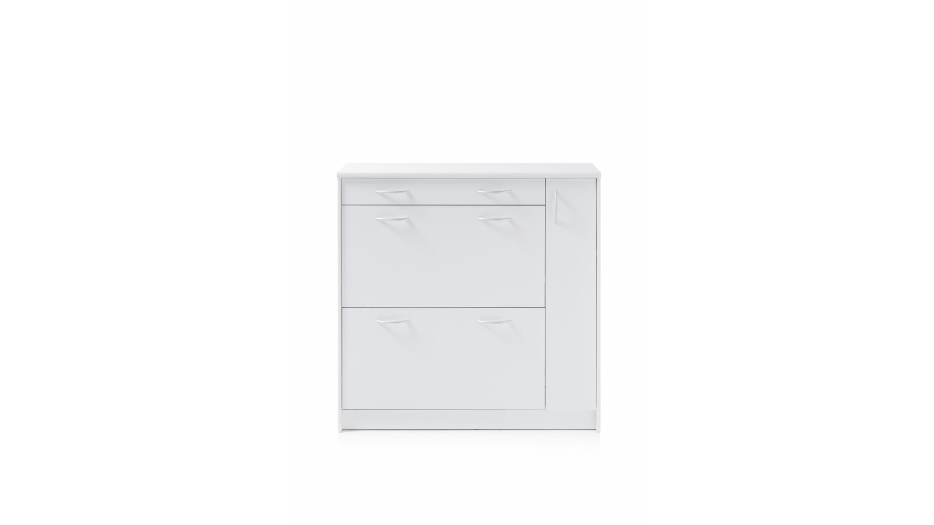 Der Schuhkipper Optimus ist enorm stilvoll designt und ausgesprochen praktisch. Mit den strahlend weißen Kunststoffoberflächen bringt der Schuhschrank moderne Eleganz in den Raum, in dem Sie ihn platzieren. Akzente setzen die alufarbenen Griffe - sie heben sich einerseits ab, verbinden sich auf der anderen Seite aber auch perfekt mit dem Weiß des attraktiv gestalteten Korpus.