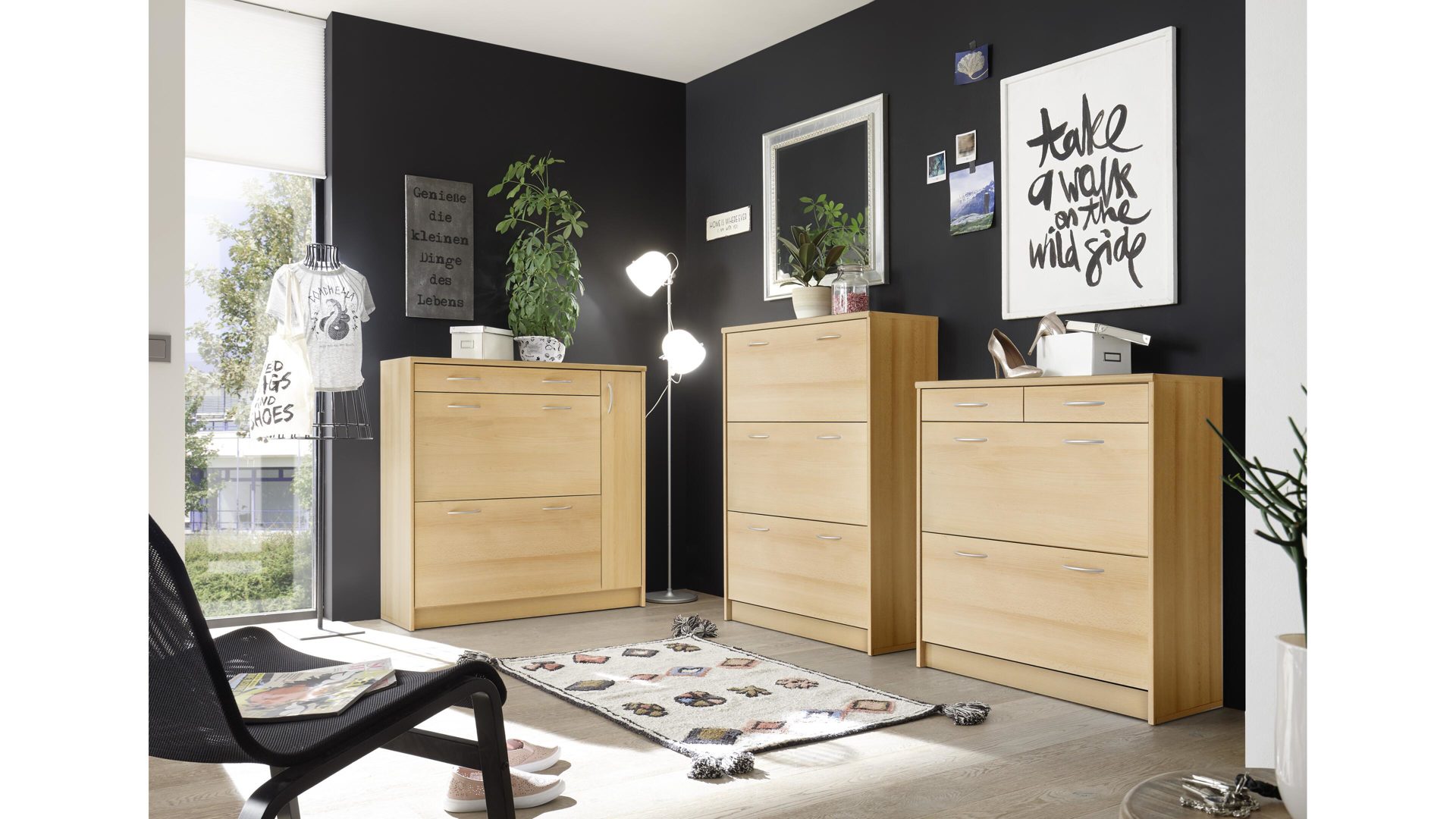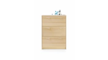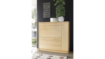 Der Schuhkipper Optimus ist enorm stilvoll designt und ausgesprochen praktisch. Mit den warmen buchefarbenen Kunststoffoberflächen bringt der Schuhschrank moderne Eleganz gepaart mit natürlichem Charme in den Raum, in dem Sie ihn platzieren. Akzente setzen die alufarbenen Griffe - sie heben sich einerseits ab, verbinden sich auf der anderen Seite aber auch perfekt mit dem Holzton des attraktiv gestalteten Korpus.