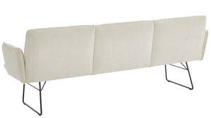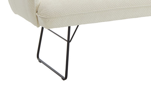 offwhitefarbener Stoffbezug, kombiniert mit matt schwarzem Drahtkufengestell aus Metall