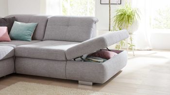 Die Aufklappfunktion F ist ein praktisches Mehrpreis-Extra für die Canapés aus dem Modulmaster-Programm MM-MP1044. Sie schafft innen klassisch weiß beschichteten Stauraum für Textilien wie Decken und Kissen, aber auch viele andere Gegenstände. Die Handhabung ist einfach und sicher.