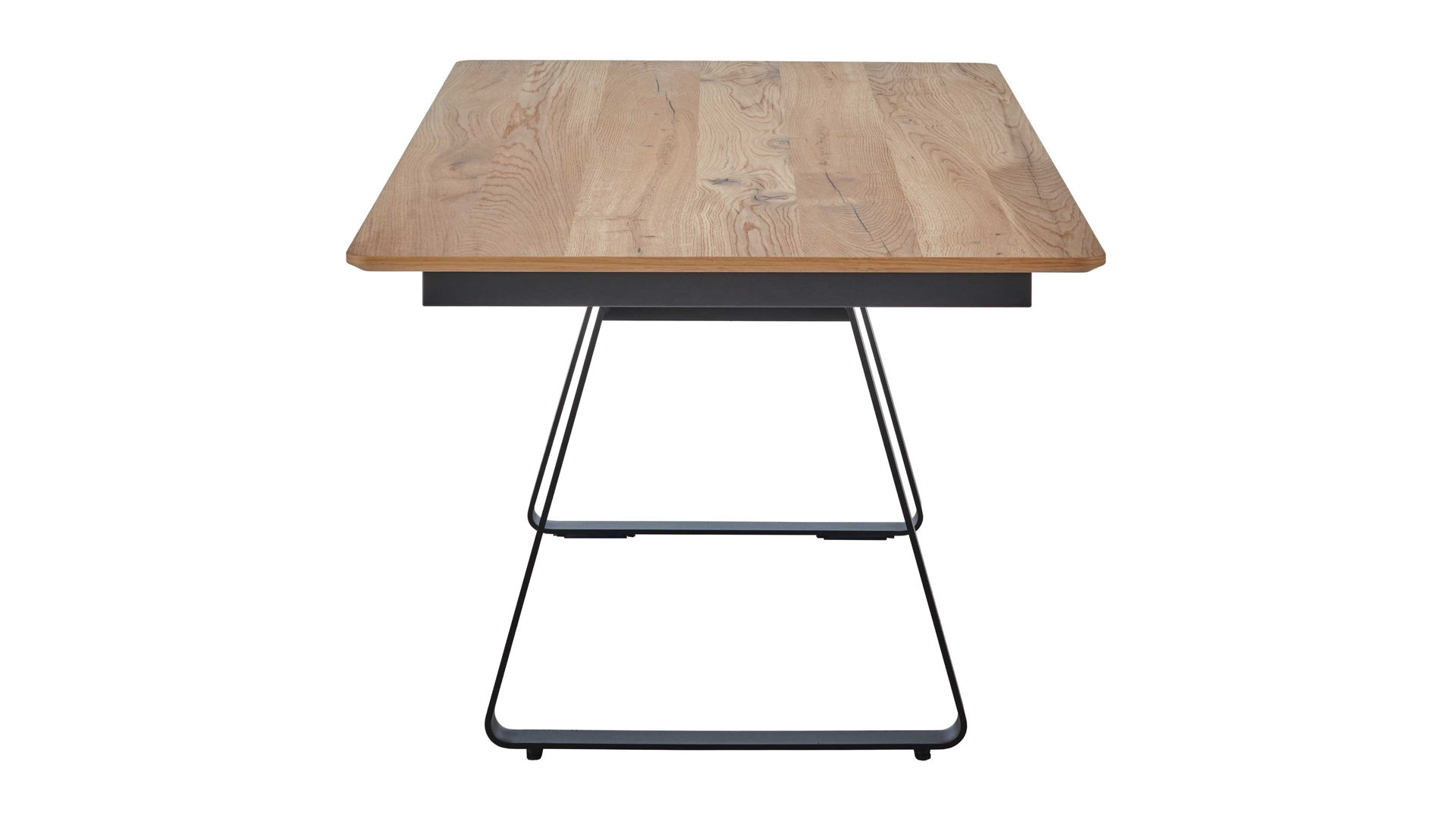 Dank mehrerer Individualisierungsmöglichkeiten können Sie den Esszimmertisch an Ihre Wünsche und Bedürfnisse anpassen. Zur Wahl stehen zwei stilvolle Gestellfarben und sieben unterschiedliche Plattenausführungen. Darüber hinaus ist der Tisch in vier verschiedenen Größen erhältlich. Optional lässt sich ein praktisches Frontauszugssystem mit Klappeinlage integrieren.