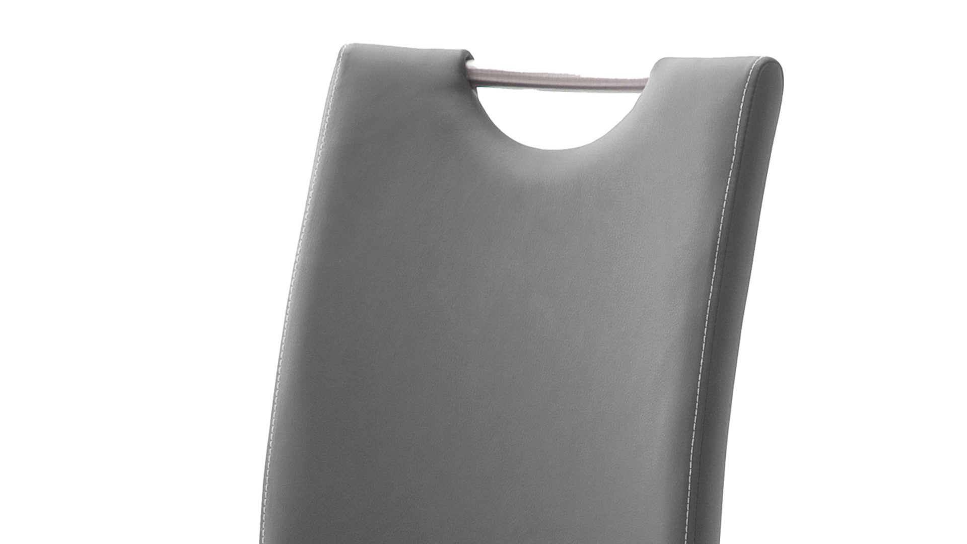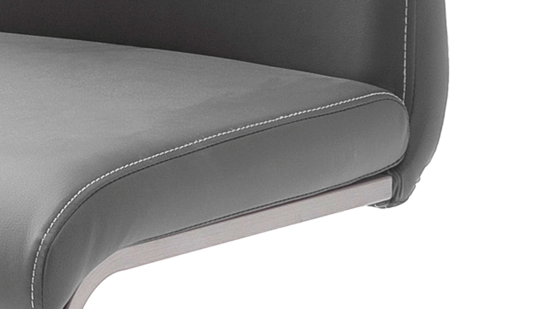 Das komfortable Sitzmöbel in Grau besticht im zeitlosen sowie geradlinigen Design und ist die perfekte Sitzgelegenheit für Ihren einladenden Essbereich. Sowohl in der Küche als auch im Esszimmer sitzen Sie und Ihre Gäste äußerst bequem auf dem Freischwinger, der mit pflegeleichtem, grauem Kunstleder und einem stabilen, gebürsteten Flachrohrgestell aus Edelstahl ein Schwingstuhl für die ganze Familie ist. Dank der praktischen Griffmulde in der Rückenlehne versetzen Sie den Polsterstuhl einfach dorthin, wo Sie ihn benötigen.